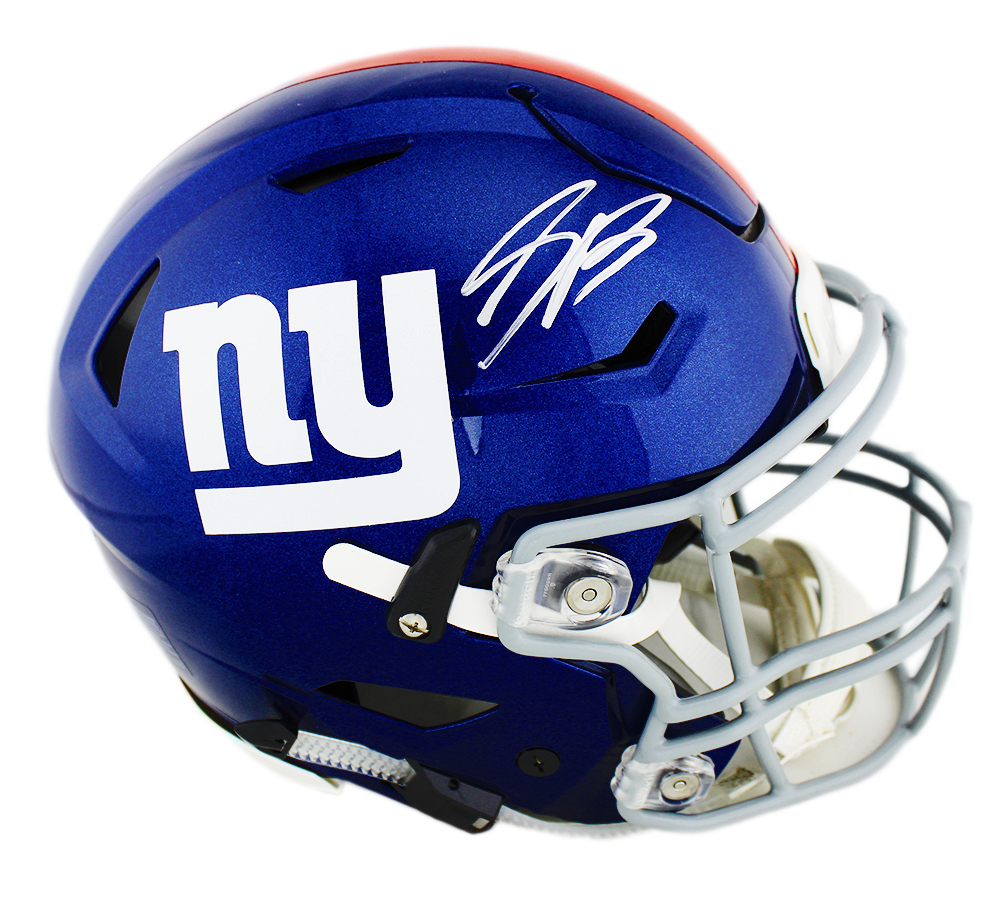 Riddell New York Giants full-size authentic on-field SpeedFlex helmet. Hand-signed by Saquon Barkley.
