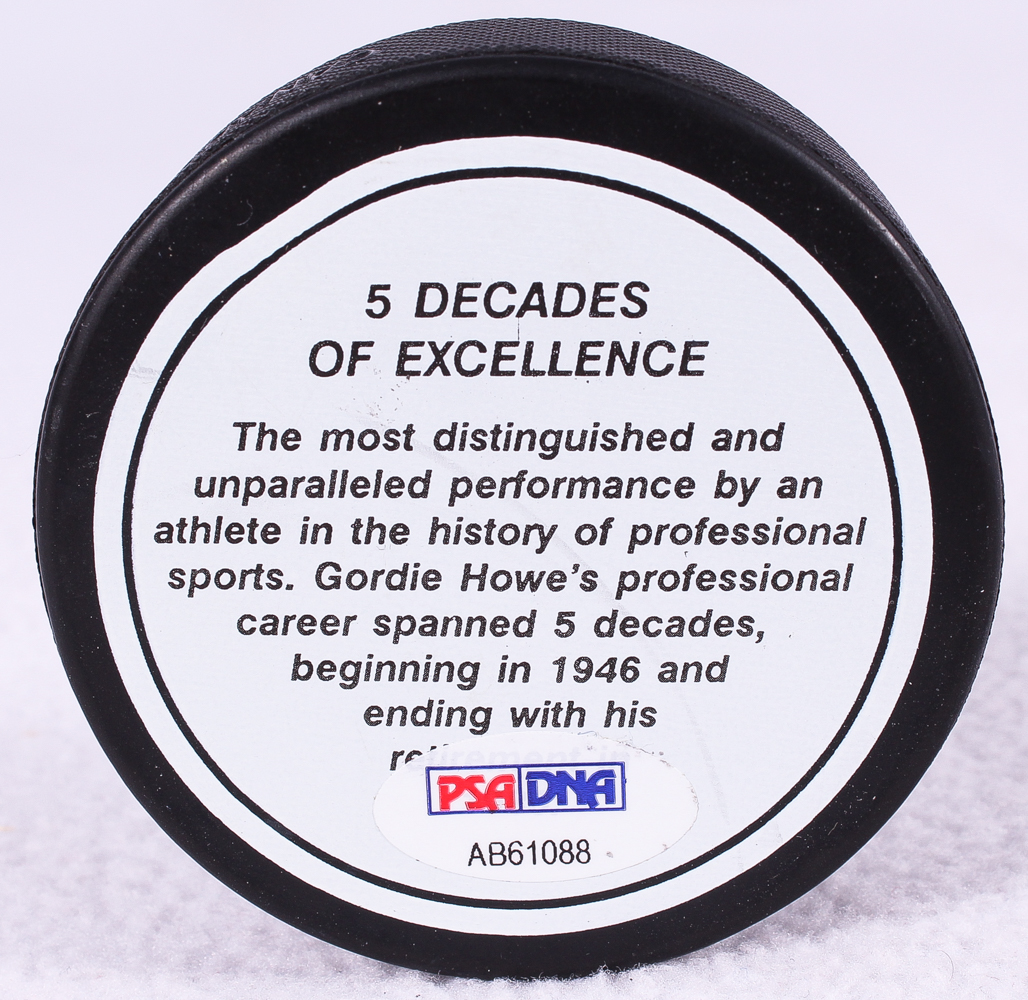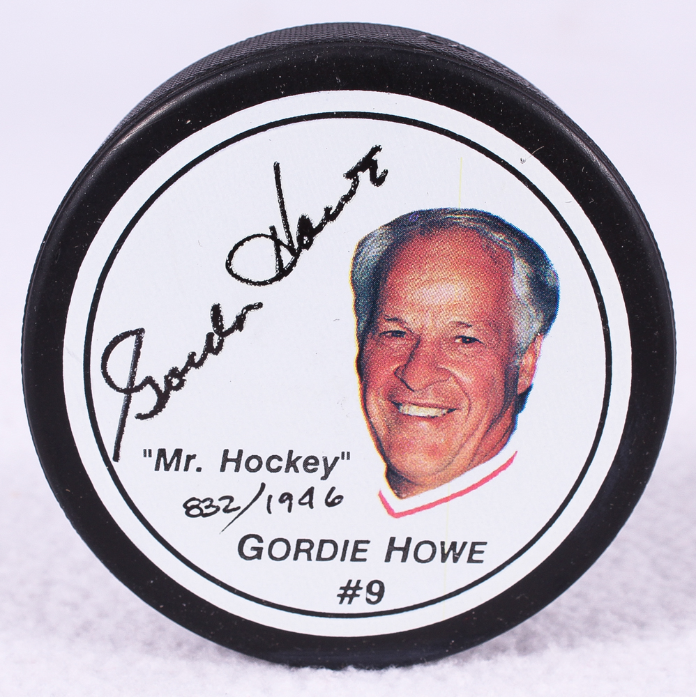 Gordie Howe Signed "Mr. Hockey" LE Photo Puck #832/1946 (PSA COA)