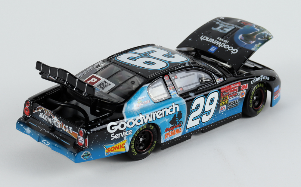 Premium die-cast car hand-signed on the windshield by Kevin Harvick. The car is limited edition to just 64,860 produced and includes the original packaging.