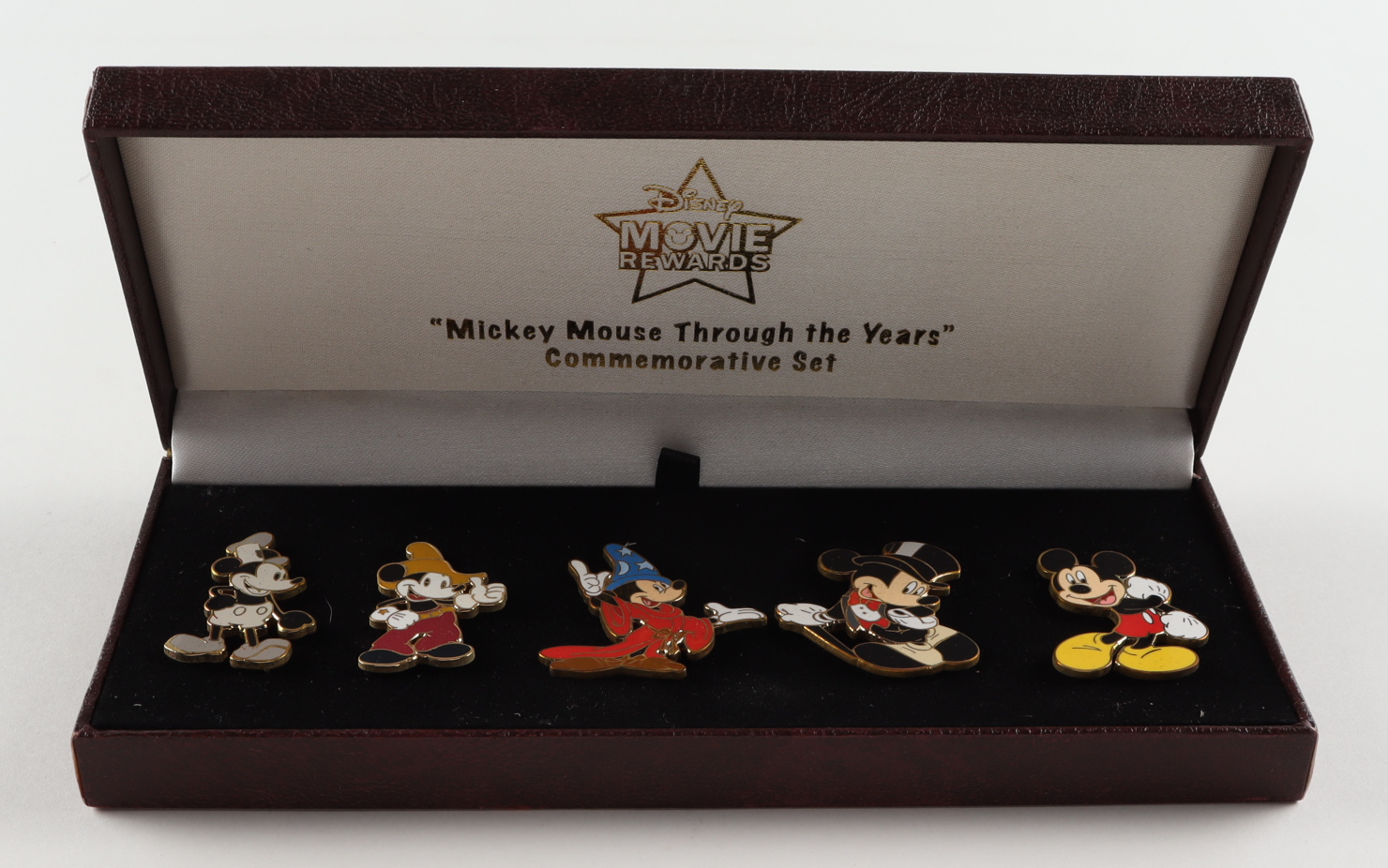 Walt Disney "Mickey Mouse Through The Years" Commemorative boxed pin set includes (5) pins shown. Box is included as shown.