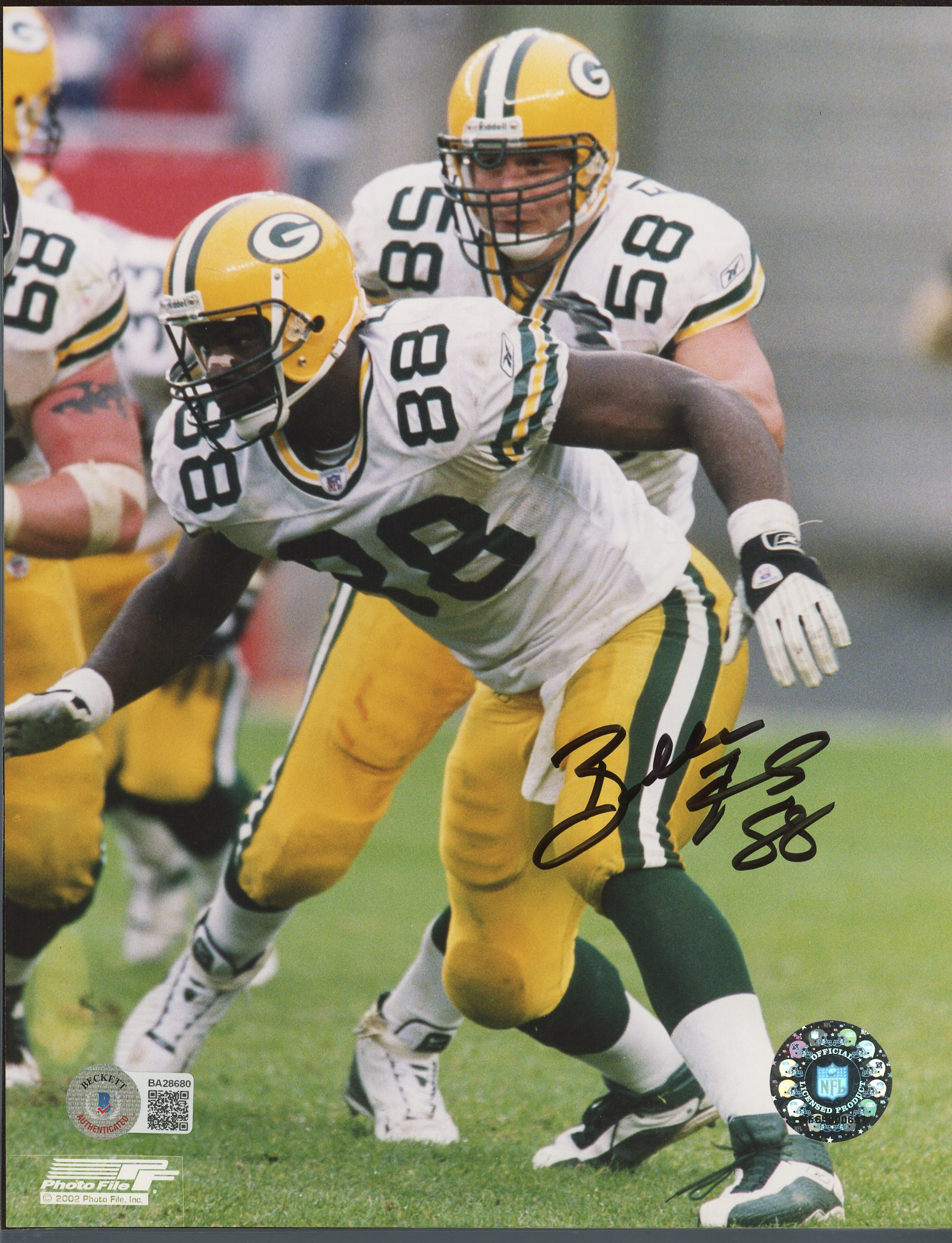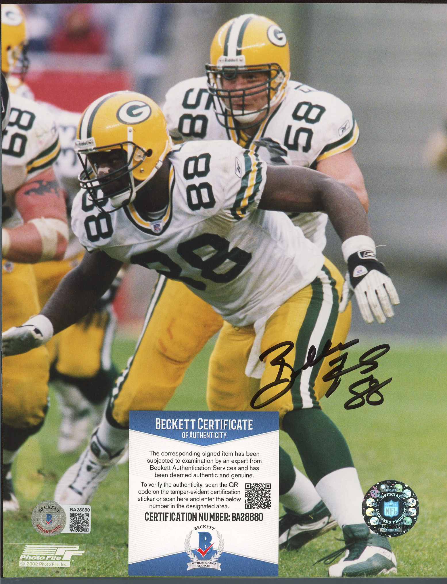 Photo measures 8" x 10" in size and has been hand-signed by Bubba Franks (Green Bay Packers).