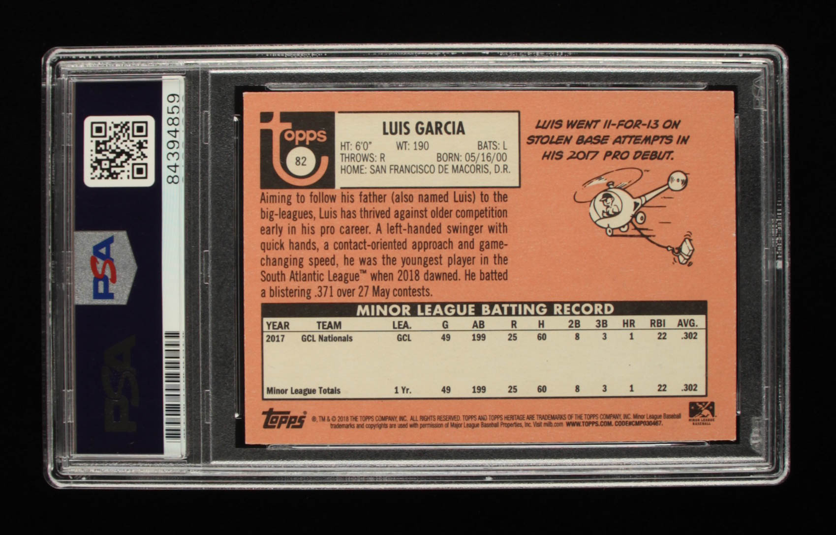 Luis Garcia Signed 2018 Topps Heritage Minors #82 (PSA Encapsulated)