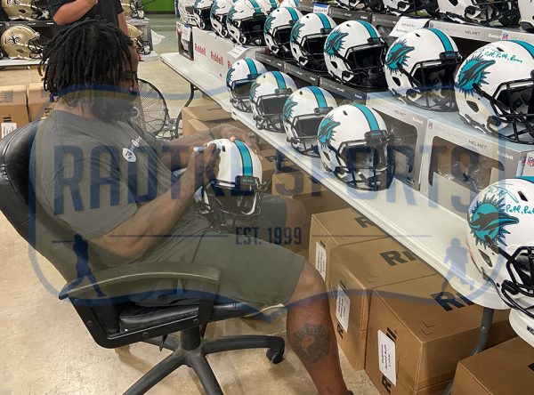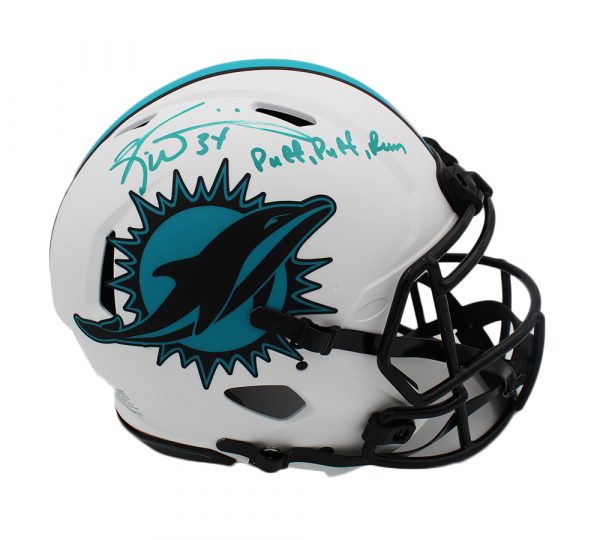 Riddell Miami Dolphins full-size authentic on-field Lunar Eclipse Alternate Speed helmet. Hand-signed and inscribed by Ricky Williams.