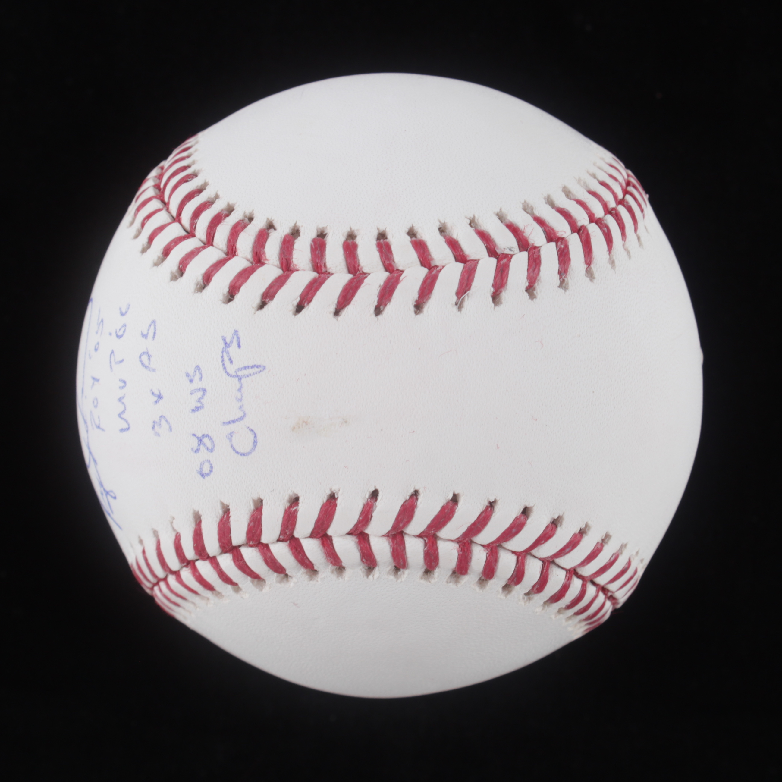 Rawlings Official Major League Ryan Howard 2004-2016 Logo Baseball. Hand-signed and inscribed by Ryan Howard. Plesase note, there is minor staining below the inscriptions on the baseball.