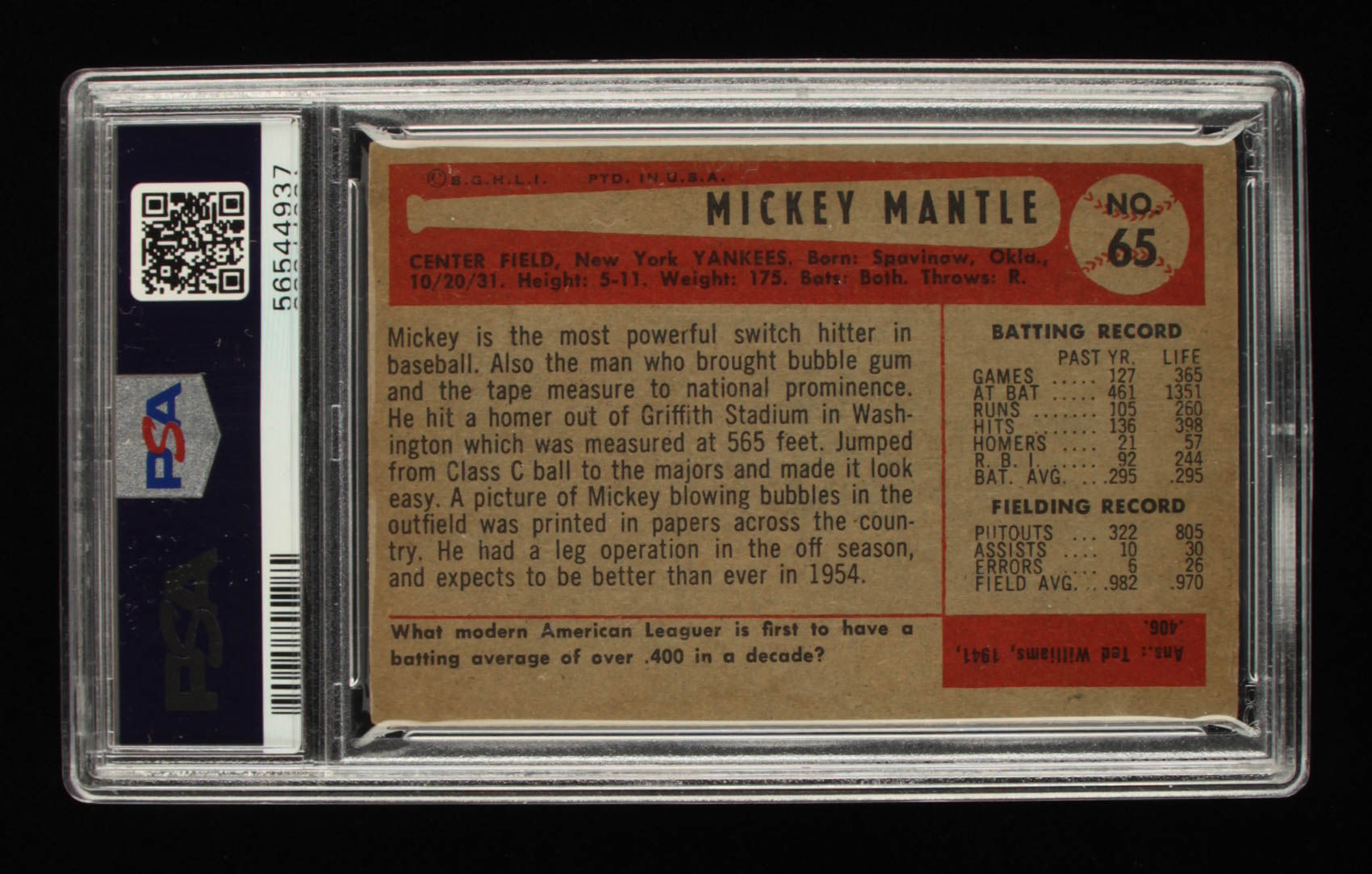 Mickey Mantle 1954 Bowman #65 (PSA 2.5)