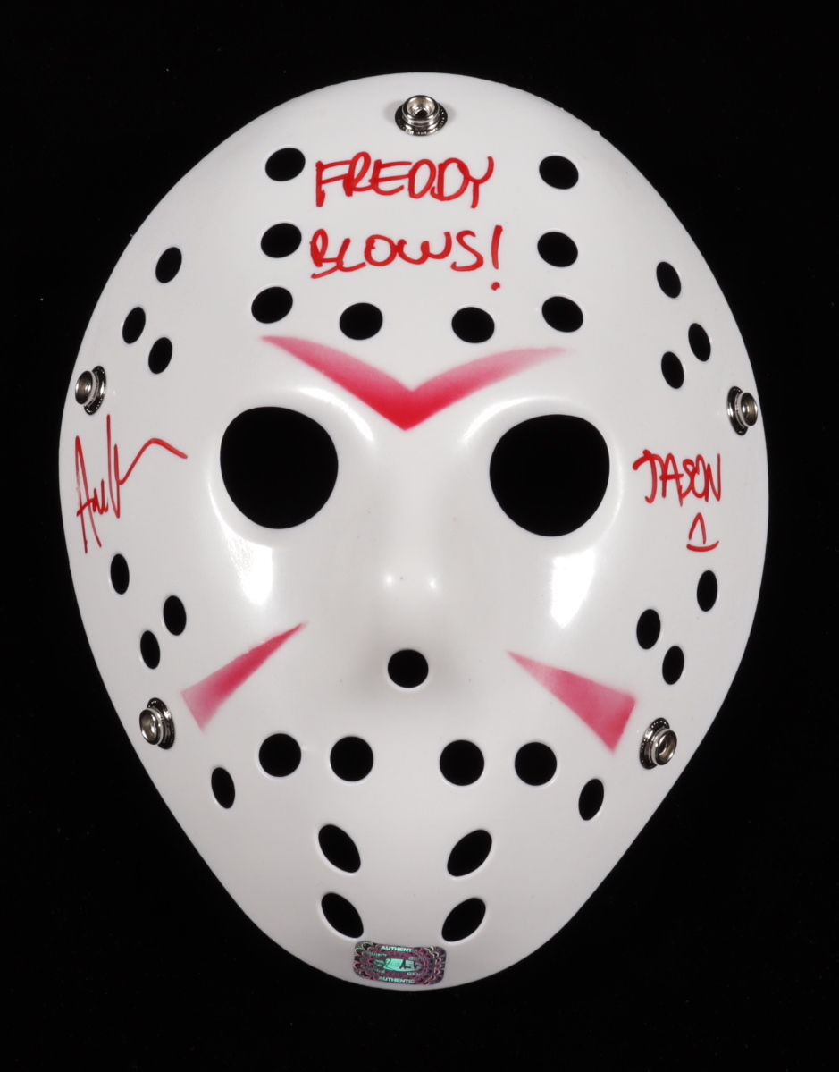 Ari Lehman Signed "Friday the 13th" Mask Inscribed "JASON 1" & "Freddy Blows!" (Lehman Hologram)