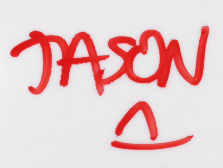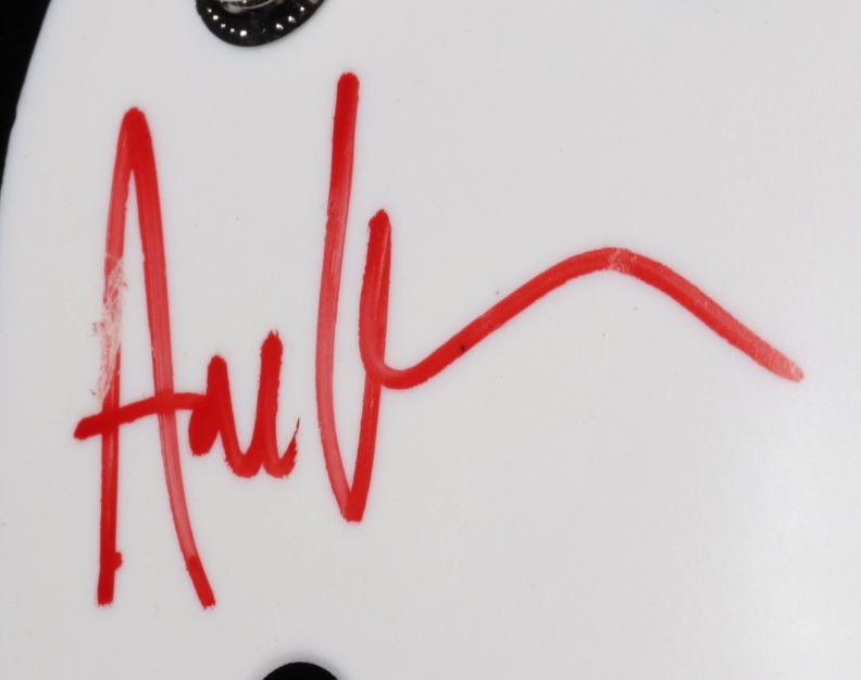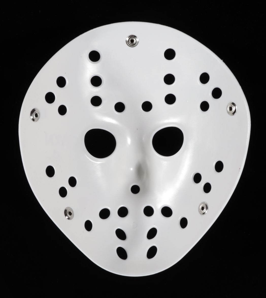 Replica "Friday the 13th" Jason Voorhees mask. Hand-signed and inscribed by Ari Lehman. Please note, the autograph is imperfect.