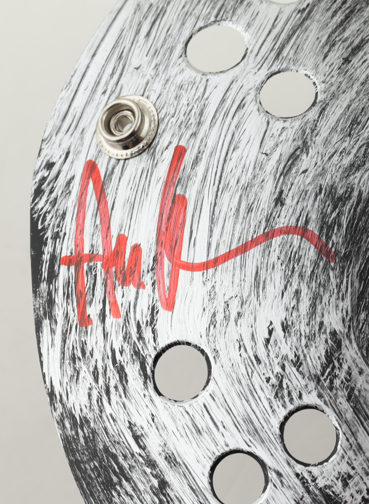 Replica "Friday the 13th" Jason Voorhees mask. Hand-signed and inscribed by Ari Lehman.