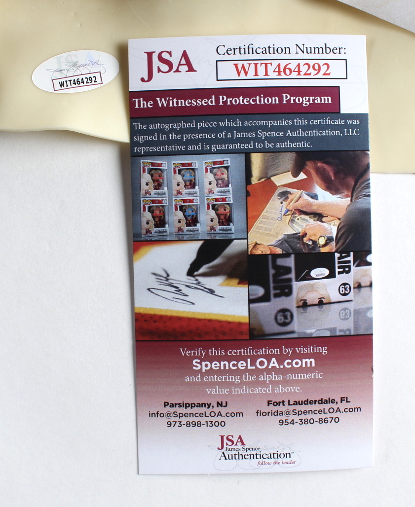 The lot / autograph(s) includes an official James Spence Authentication (JSA) hologram and matching COA for authenticity purposes. The signing of this item was witnessed by JSA. Authentication: JSA COA