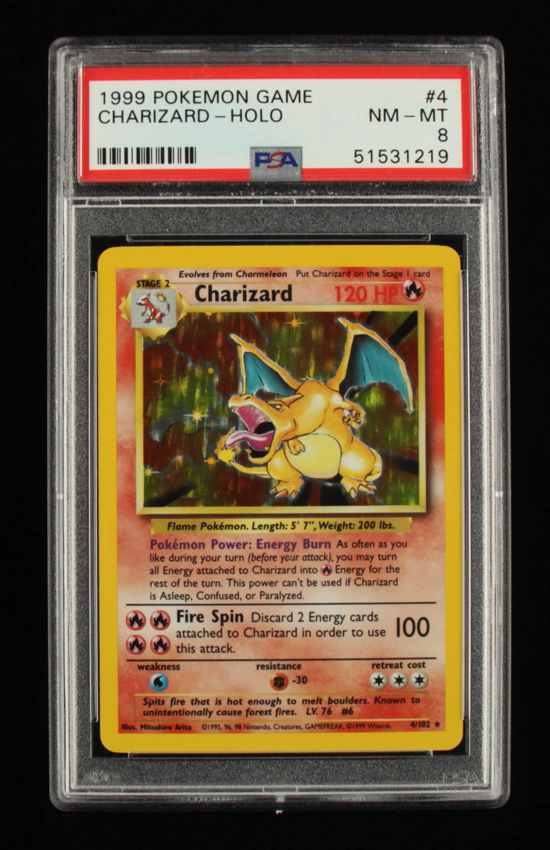 Charizard 1999 Pokemon Base Unlimited #4 Holo (PSA 8)