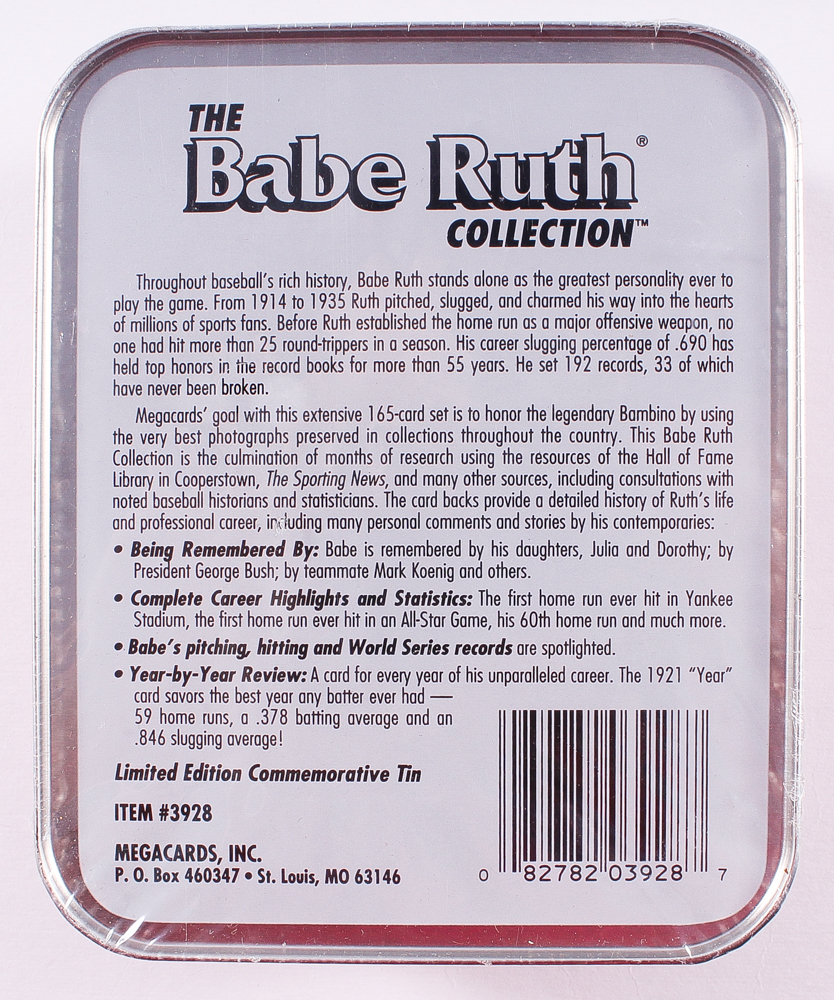 Complete Set of (165) The Babe Ruth Collection Limited Edition Cards. Please note that the tin is in its original packaging. See photos for more details.