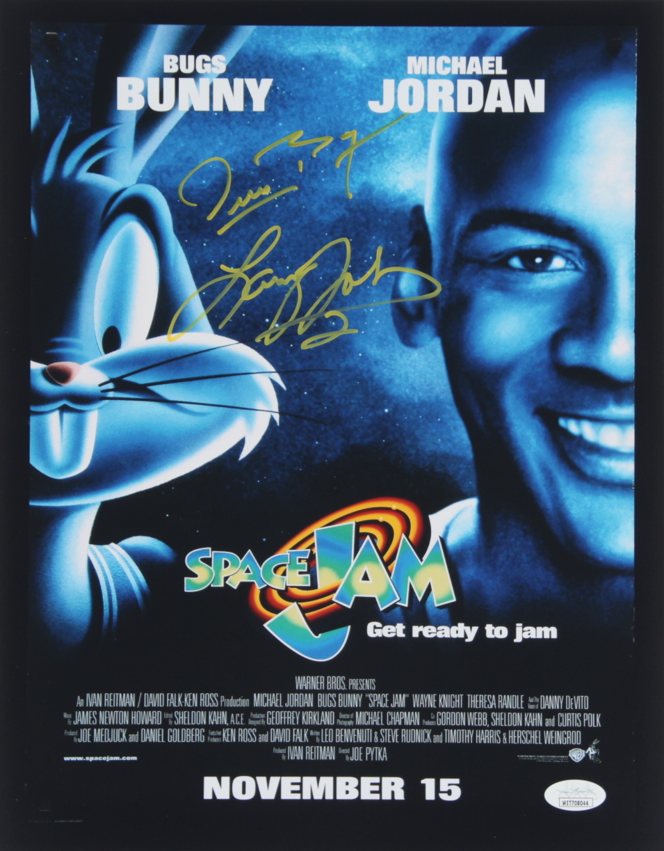 Muggsy Bogues & Larry Johnson Signed "Space Jam" 11x14 Photo (JSA COA)