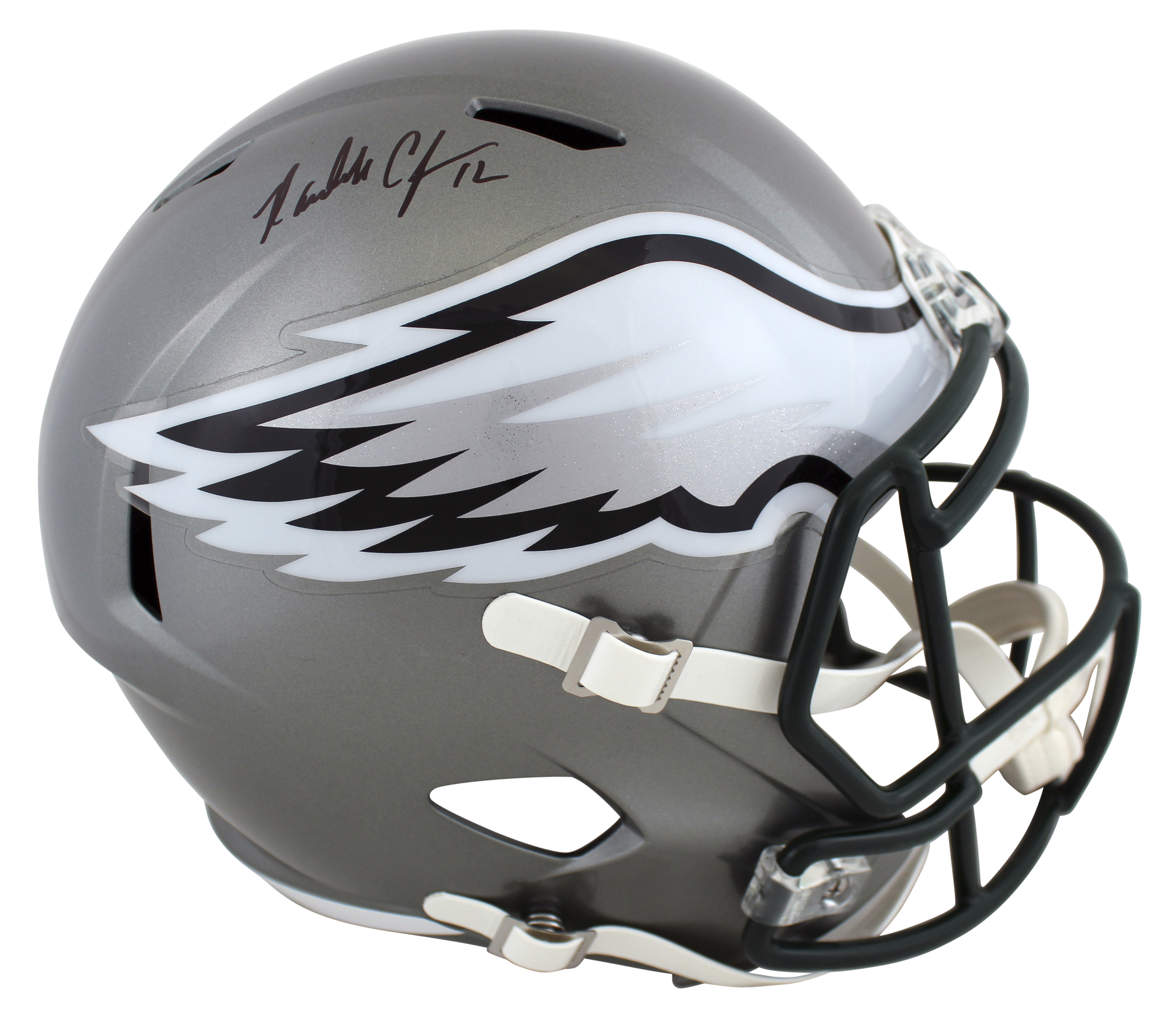 Riddell Philadelphia Eagles full-size replica Flash Alternate Speed helmet. Hand-signed by Randall Cunningham.