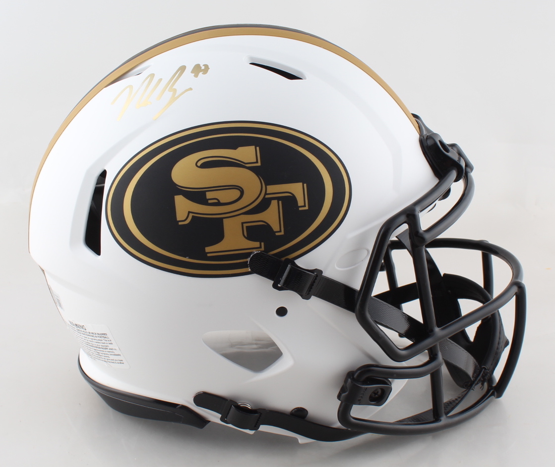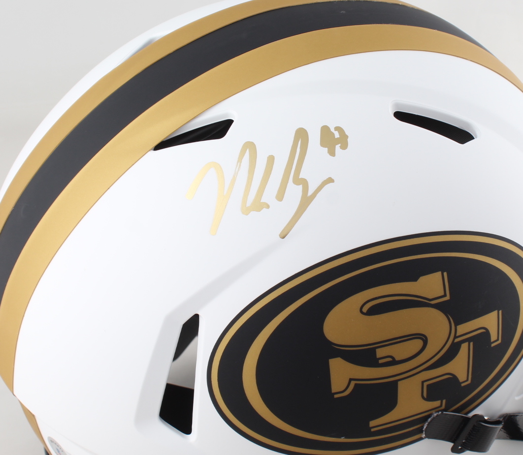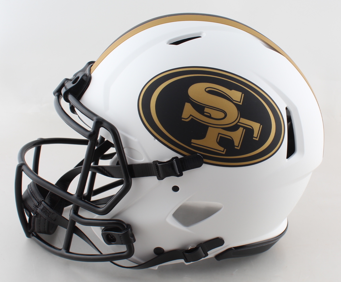 Riddell San Francisco 49ers full-size authentic on-field lunar eclipse alternate speed helmet. Hand-signed by Nick Bosa.