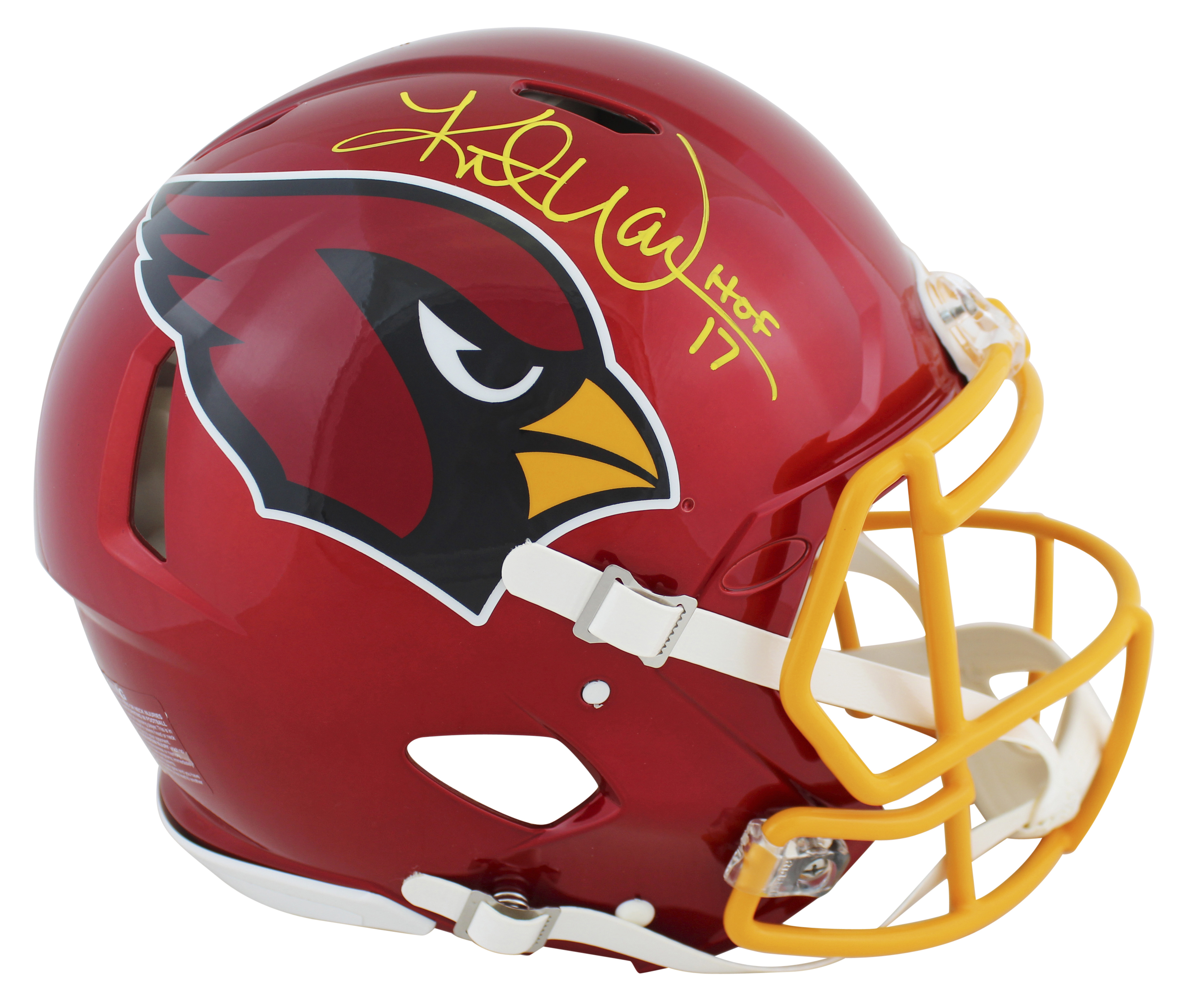 Kurt Warner Signed Cardinals Full-Size Authentic On-Field Flash Alternate Speed Helmet Inscribed "HOF 17" (Beckett)