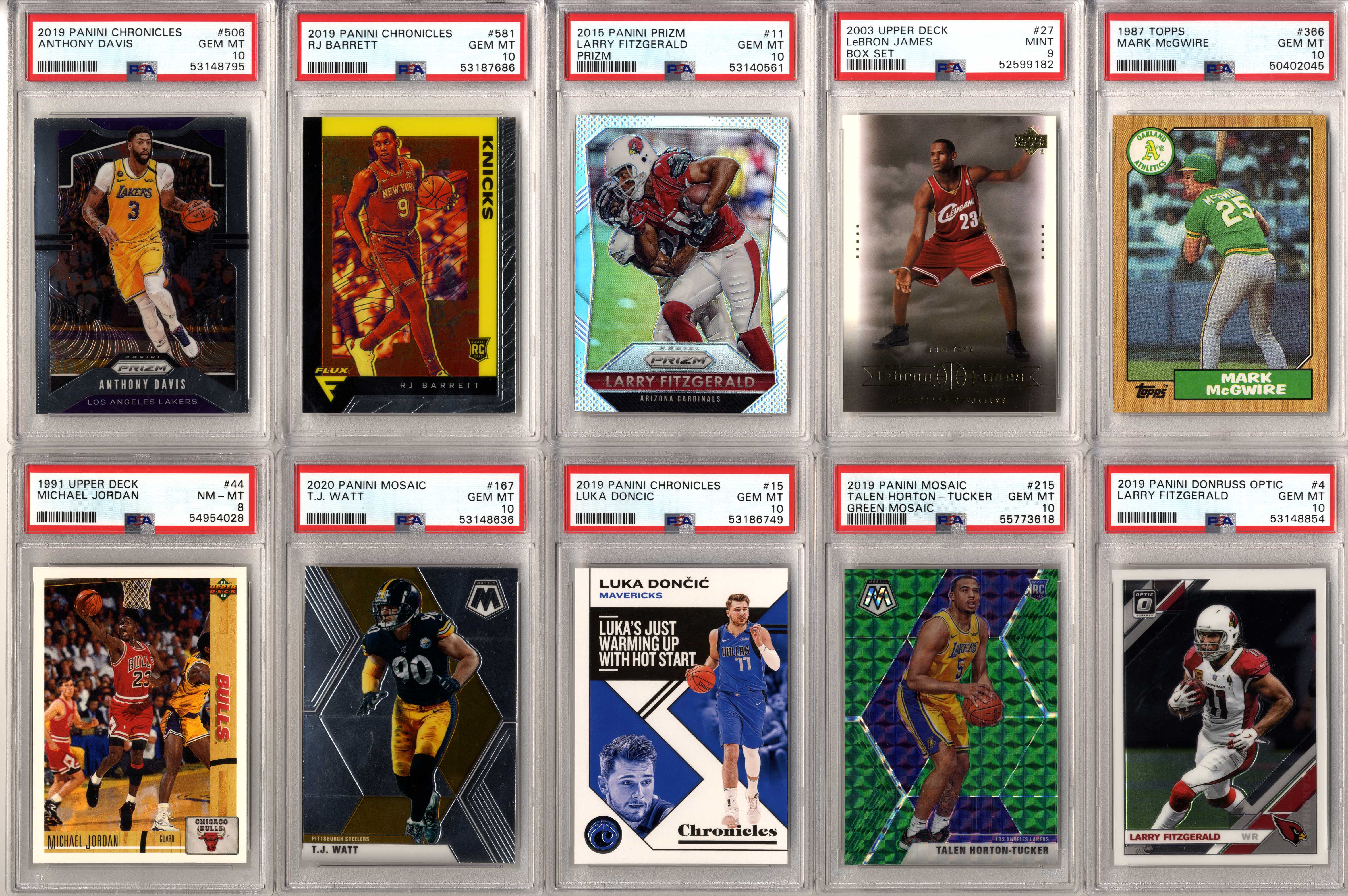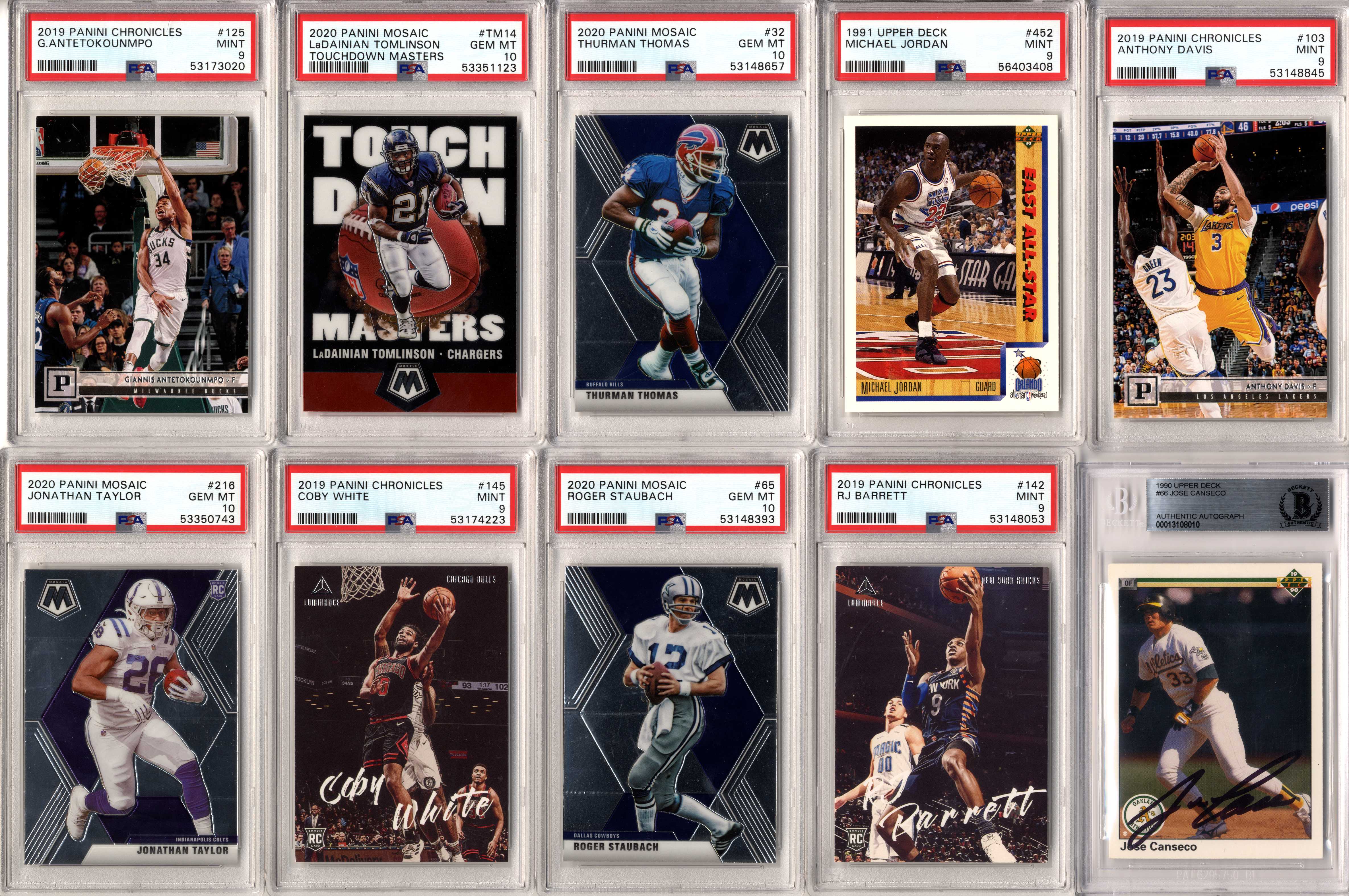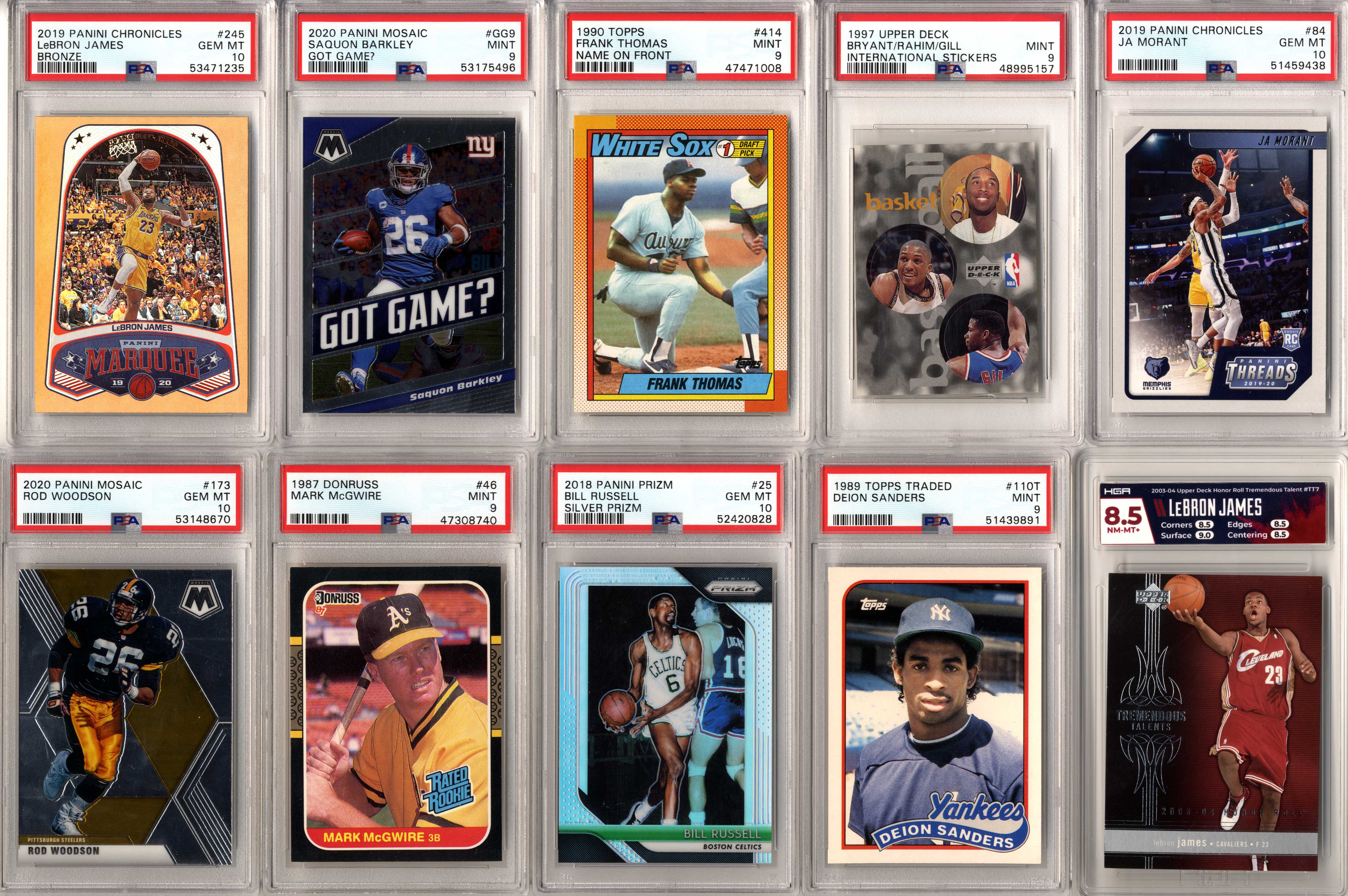 Look for graded and ungraded cards of players such as: Michael Jordan, Tom Brady, Patrick Mahomes, Tiger Woods, Babe Ruth, Wayne Gretzky, Mike Trout, Aaron Rodgers, Magic Johnson, Larry Bird, Shohei Ohtani, Ted Williams, Mickey Mantle, Joe DiMaggio, Ken Griffey Jr., Barry Bonds, Albert Pujols, DK Metcalf, Stephen Curry, Charlie Sheen, Justin Herbert, Willie Mays, Frank Robinson, Willie McCovey, Hank Aaron, Ernie Banks, Jose Altuve, Jim Brown, Don Mattingly, Robin Yount, Mike Singletary, Walter Payton, Kobe Bryant, Trevor Lawrence, Justin Lawrence, Justin Fields, Barry Sanders, Drew Brees, Jim Kelly, Thurman Thomas, Andre Reed, Stefon Diggs, Justin Jefferson, Aaron Donald, Joe Greene, Jerome Bettis, Franco Harris, Rod Woodson, Randy Moss, Kyler Murray, Pele, Emmitt Smith, Troy Aikman, Roger Staubach, Clayton Kershaw, Lamar Jackson, Bo Jackson, Dan Marino, Pete Rose, Juan Soto, Trey Lance, Ronald Acuna Jr, Julian Edelman, Peyton Manning, Brett Favre, Joe Montana, Ezekiel Elliott, Rob Gronkowski, Davante Adams, Tyreek Hill, CeeDee Lamb, Allen Iverson, Nolan Ryan, Ray Lewis, Michael Irvin, Joe Burrow, Lou Gehrig, Shaquille O’Neal, Ja Morant, Zion Williamson, Luka Doncic, Dennis Rodman, Derrick Henry, Fernando Tatis Jr, JJ Watt, Daniel Jones, Sandy Koufax, Jerry West, Jalen Hurts, Chris Godwin, Najee Harris, Calvin Johnson, Baker Mayfield, Christian McCaffrey, Giannis Antetokounmpo, Vladimir Guerrero Jr, OJ Simpson, Yogi Berra, Eric Lindros, Brett Hull, Brian Urlacher, Dick Butkus, Troy Polamalu, Alex Rodriguez, Lamelo Ball, Russell Wilson, Terry Bradshaw, LeBron James, James Worthy, Joe Namath, Kevin Durant, Mario Lemieux, Luis Roberts, Wander Franco, Roberto Clemente, Yordan Alvarez, Mac Jones, Ty Cobb, Honus Wagner, Josh Allen, Bo Bichette, Tom Seaver, Jerry Rice, Steve Young, Dirk Nowitzki, Steve Yzerman, Tua Tagovailoa, Stephen Strasburg, Patrick Roy, Kawhi Leonard, Patrick Kane, Tim Duncan, Freddie Freeman, James Harden, Eloy Jimenez, Alexis Lafreniere, Coby White, Tyler Herro, Gavin Lux, Connor McDavid, Pete Alonso, George Brett, Rickey Henderson, Tony Gwynn, Wade Boggs, Doc Gooden, Travis Kelce, Deion Sanders, Alexander Ovechkin, Greg Maddux, Chipper Jones, Cristiano Ronaldo, Francisco Lindor, Dak Prescott, Jacob DeGrom, Ozzie Smith, Zach Wilson, Jack Eichel, Ben Simmons, Jayson Tatum, Anthony Davis, Kyle Lewis, Jasson Dominguez, Earl Campbell, Steve Nash, Carson Wentz, Cal Ripken Jr, Anthony Edwards, Sidney Crosby, Stephen Strasburg, Bryce Harper, Mookie Betts, RJ Barrett, Trae Young, bob Griese, Cody Bellinger, Ben Roethlisberger, Gale Sayers, Pat Tillman, Reggie White, Hines Ward, Dustin Pedroia, Johnny Unitas, Andrew Luck, Cris Carter, Adrian Peterson, Tim Tebow, Marshall Faulk, John Elway, Lawrence Taylor, Ronnie Lott, Anthony Munoz, Jack Lambert, John Hannah, Eric Dickerson, Ray Nitschke, Terrell Owens, Steve Young, Ladainian Tomlinson, Junior Seau, Bart Starr, Larry Fitzgerald, Derrick Thomas, Chris Paul, Shawn Kemp, Alonzo Mourning, Tim Hardaway, Chris Webber, Bill Walton, Chris Bosh, Bernard King, Chris Mullin, Joe Dumars, Grant Hill, Carmelo Anthony, Vince Carter, Kevin Johnson, Dikembe Mutombo, Tracy McGrady, Dennis Rodman, Dwight Howard, Reggie Miller, Ray Allen, Dominique Wilkins, George Gervin, Kevin McHale, Paul Pierce, Jason Kidd, Allen Iverson, Patrick Ewing, Gary Payton, Isiah Thomas, Walt Frazier, Clyde Drexler, Dwyane Wade, Scottie Pippen, Julius Erving, John Stockton, Charles Barkley, Karl Malone, Kevin Garnett, Hakeem Olajuwon, David Robinson and many more!