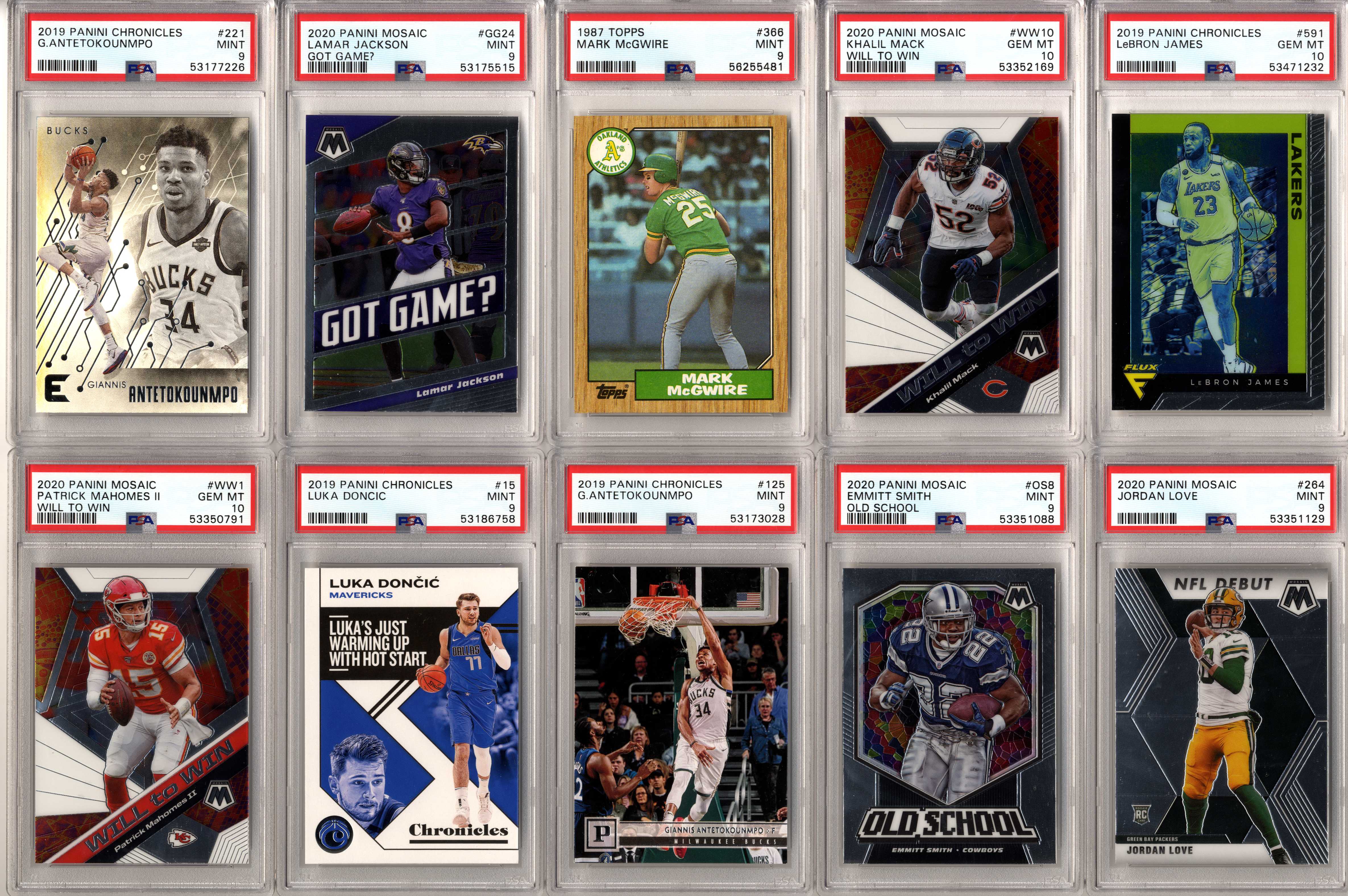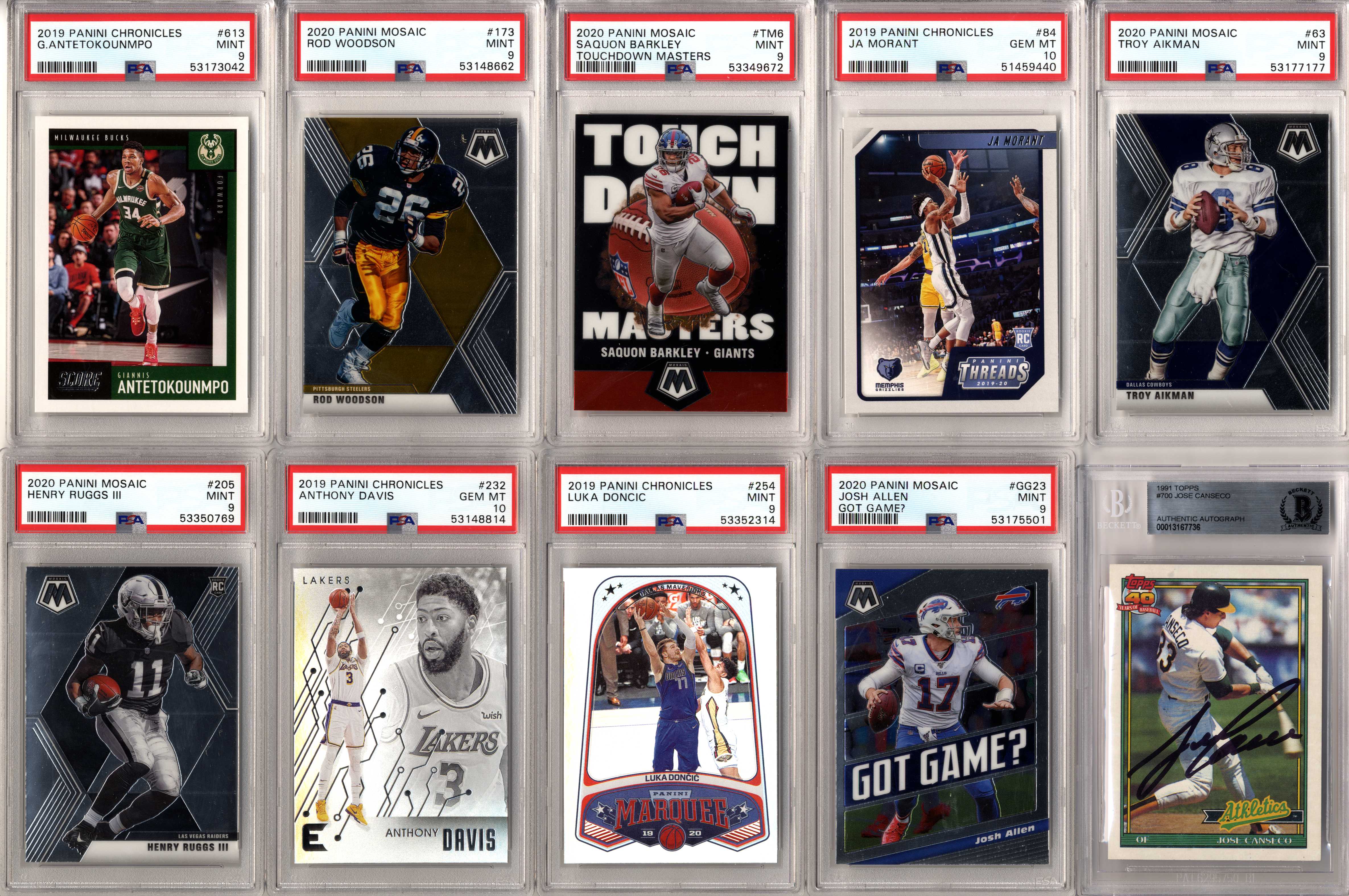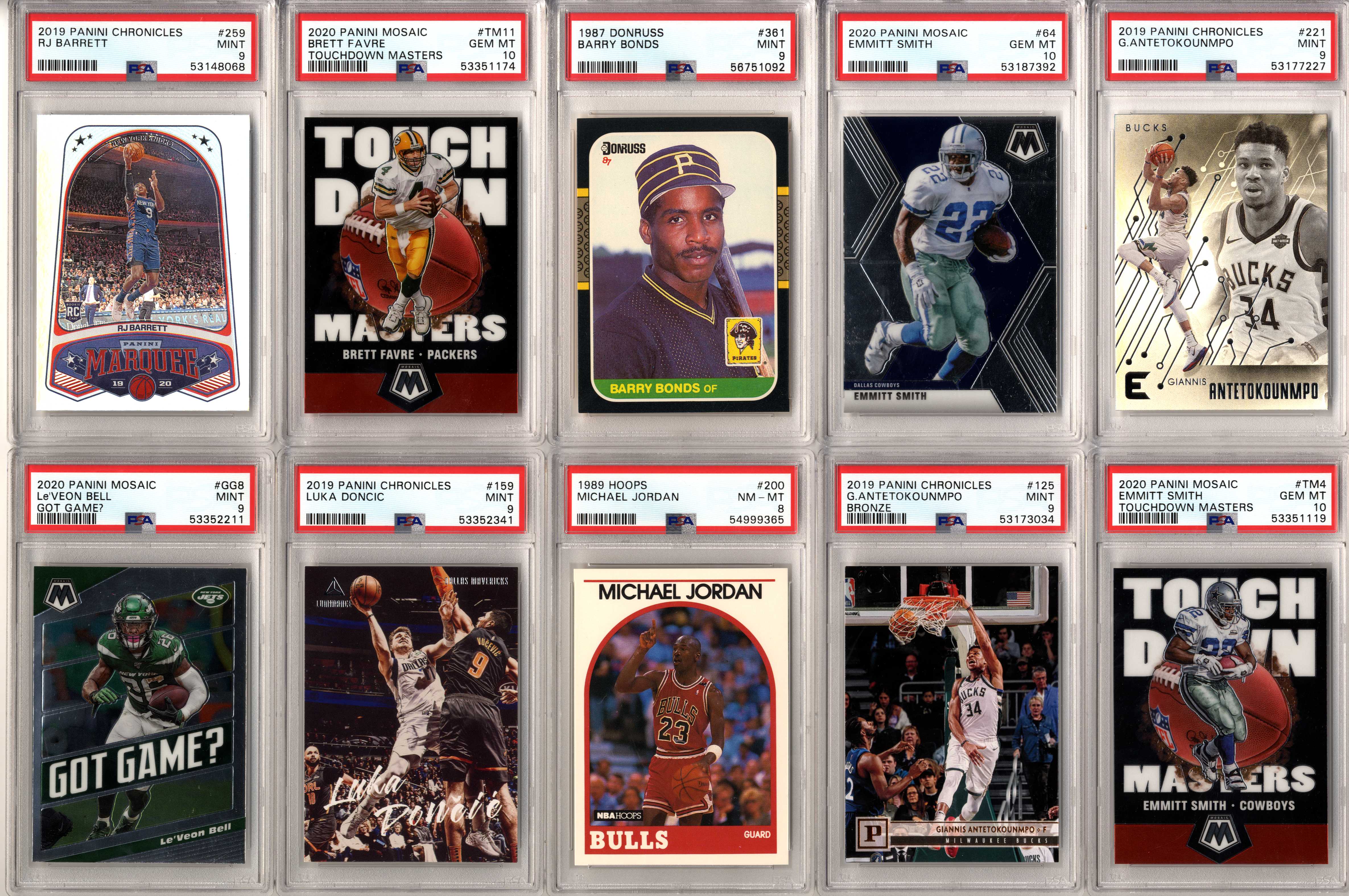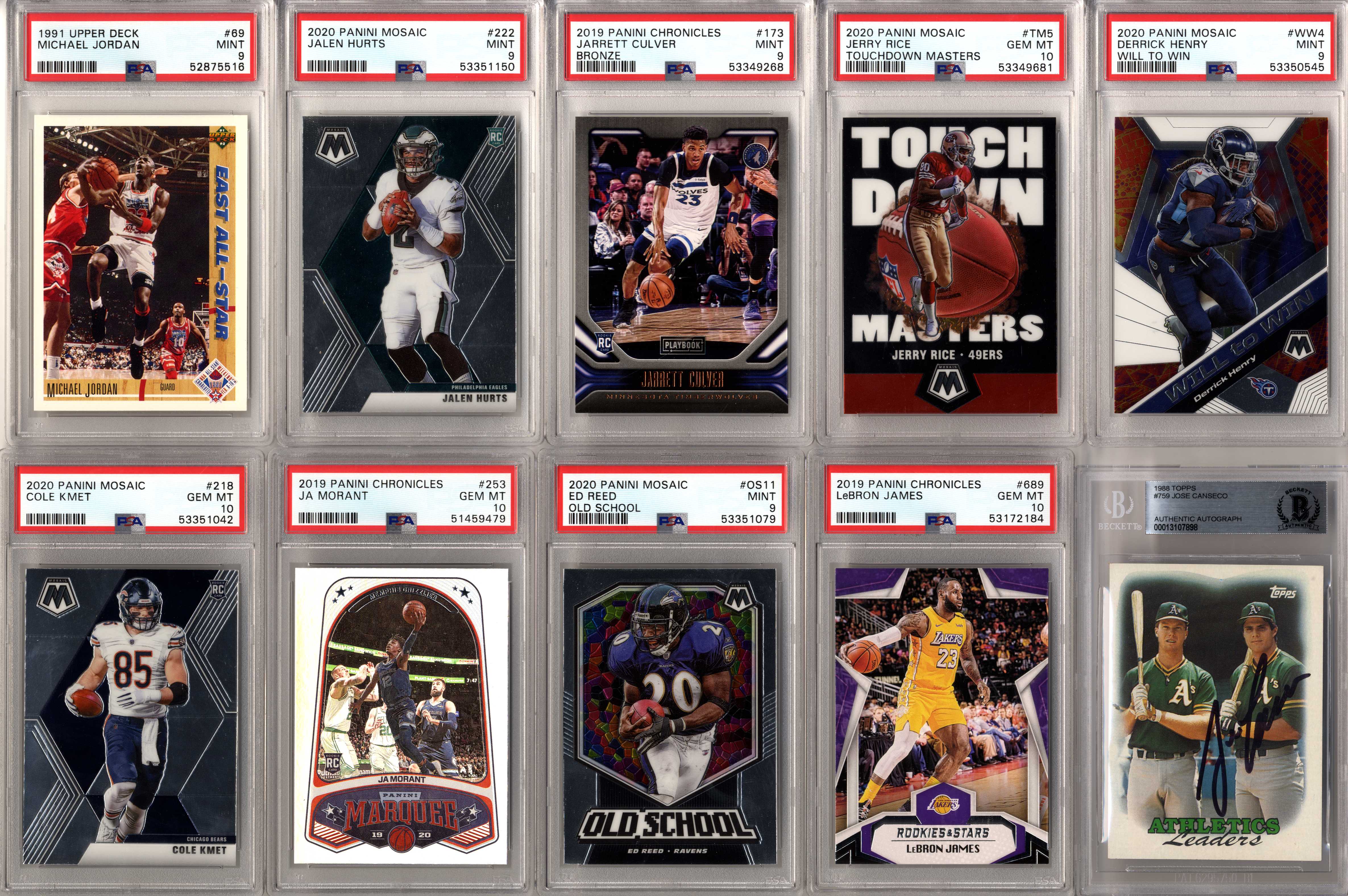 Look for graded and ungraded cards of players such as: Michael Jordan, Tom Brady, Patrick Mahomes, Tiger Woods, Babe Ruth, Wayne Gretzky, Mike Trout, Aaron Rodgers, Magic Johnson, Larry Bird, Shohei Ohtani, Ted Williams, Mickey Mantle, Joe DiMaggio, Ken Griffey Jr., Barry Bonds, Albert Pujols, DK Metcalf, Stephen Curry, Charlie Sheen, Justin Herbert, Willie Mays, Frank Robinson, Willie McCovey, Hank Aaron, Ernie Banks, Jose Altuve, Jim Brown, Don Mattingly, Robin Yount, Mike Singletary, Walter Payton, Kobe Bryant, Trevor Lawrence, Justin Lawrence, Justin Fields, Barry Sanders, Drew Brees, Jim Kelly, Thurman Thomas, Andre Reed, Stefon Diggs, Justin Jefferson, Aaron Donald, Joe Greene, Jerome Bettis, Franco Harris, Rod Woodson, Randy Moss, Kyler Murray, Pele, Emmitt Smith, Troy Aikman, Roger Staubach, Clayton Kershaw, Lamar Jackson, Bo Jackson, Dan Marino, Pete Rose, Juan Soto, Trey Lance, Ronald Acuna Jr, Julian Edelman, Peyton Manning, Brett Favre, Joe Montana, Ezekiel Elliott, Rob Gronkowski, Davante Adams, Tyreek Hill, CeeDee Lamb, Allen Iverson, Nolan Ryan, Ray Lewis, Michael Irvin, Joe Burrow, Lou Gehrig, Shaquille O’Neal, Ja Morant, Zion Williamson, Luka Doncic, Dennis Rodman, Derrick Henry, Fernando Tatis Jr, JJ Watt, Daniel Jones, Sandy Koufax, Jerry West, Jalen Hurts, Chris Godwin, Najee Harris, Calvin Johnson, Baker Mayfield, Christian McCaffrey, Giannis Antetokounmpo, Vladimir Guerrero Jr, OJ Simpson, Yogi Berra, Eric Lindros, Brett Hull, Brian Urlacher, Dick Butkus, Troy Polamalu, Alex Rodriguez, Lamelo Ball, Russell Wilson, Terry Bradshaw, LeBron James, James Worthy, Joe Namath, Kevin Durant, Mario Lemieux, Luis Roberts, Wander Franco, Roberto Clemente, Yordan Alvarez, Mac Jones, Ty Cobb, Honus Wagner, Josh Allen, Bo Bichette, Tom Seaver, Jerry Rice, Steve Young, Dirk Nowitzki, Steve Yzerman, Tua Tagovailoa, Stephen Strasburg, Patrick Roy, Kawhi Leonard, Patrick Kane, Tim Duncan, Freddie Freeman, James Harden, Eloy Jimenez, Alexis Lafreniere, Coby White, Tyler Herro, Gavin Lux, Connor McDavid, Pete Alonso, George Brett, Rickey Henderson, Tony Gwynn, Wade Boggs, Doc Gooden, Travis Kelce, Deion Sanders, Alexander Ovechkin, Greg Maddux, Chipper Jones, Cristiano Ronaldo, Francisco Lindor, Dak Prescott, Jacob DeGrom, Ozzie Smith, Zach Wilson, Jack Eichel, Ben Simmons, Jayson Tatum, Anthony Davis, Kyle Lewis, Jasson Dominguez, Earl Campbell, Steve Nash, Carson Wentz, Cal Ripken Jr, Anthony Edwards, Sidney Crosby, Stephen Strasburg, Bryce Harper, Mookie Betts, RJ Barrett, Trae Young, bob Griese, Cody Bellinger, Ben Roethlisberger, Gale Sayers, Pat Tillman, Reggie White, Hines Ward, Dustin Pedroia, Johnny Unitas, Andrew Luck, Cris Carter, Adrian Peterson, Tim Tebow, Marshall Faulk, John Elway, Lawrence Taylor, Ronnie Lott, Anthony Munoz, Jack Lambert, John Hannah, Eric Dickerson, Ray Nitschke, Terrell Owens, Steve Young, Ladainian Tomlinson, Junior Seau, Bart Starr, Larry Fitzgerald, Derrick Thomas, Chris Paul, Shawn Kemp, Alonzo Mourning, Tim Hardaway, Chris Webber, Bill Walton, Chris Bosh, Bernard King, Chris Mullin, Joe Dumars, Grant Hill, Carmelo Anthony, Vince Carter, Kevin Johnson, Dikembe Mutombo, Tracy McGrady, Dennis Rodman, Dwight Howard, Reggie Miller, Ray Allen, Dominique Wilkins, George Gervin, Kevin McHale, Paul Pierce, Jason Kidd, Allen Iverson, Patrick Ewing, Gary Payton, Isiah Thomas, Walt Frazier, Clyde Drexler, Dwyane Wade, Scottie Pippen, Julius Erving, John Stockton, Charles Barkley, Karl Malone, Kevin Garnett, Hakeem Olajuwon, David Robinson and many more!