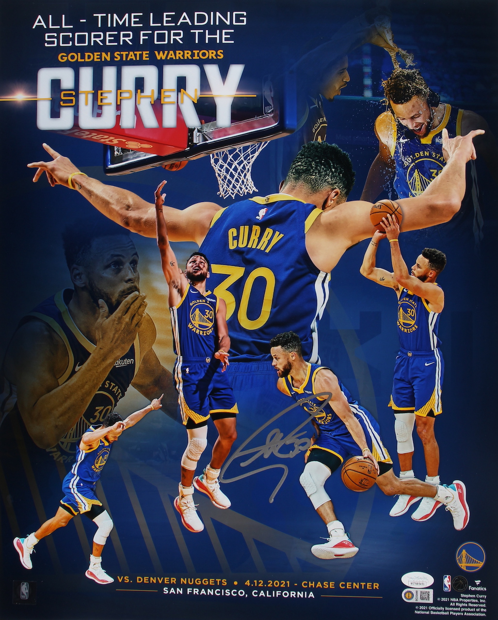 Photo measures 16" x 20" in size and has been hand-signed by Stephen Curry (Golden State Warriors).