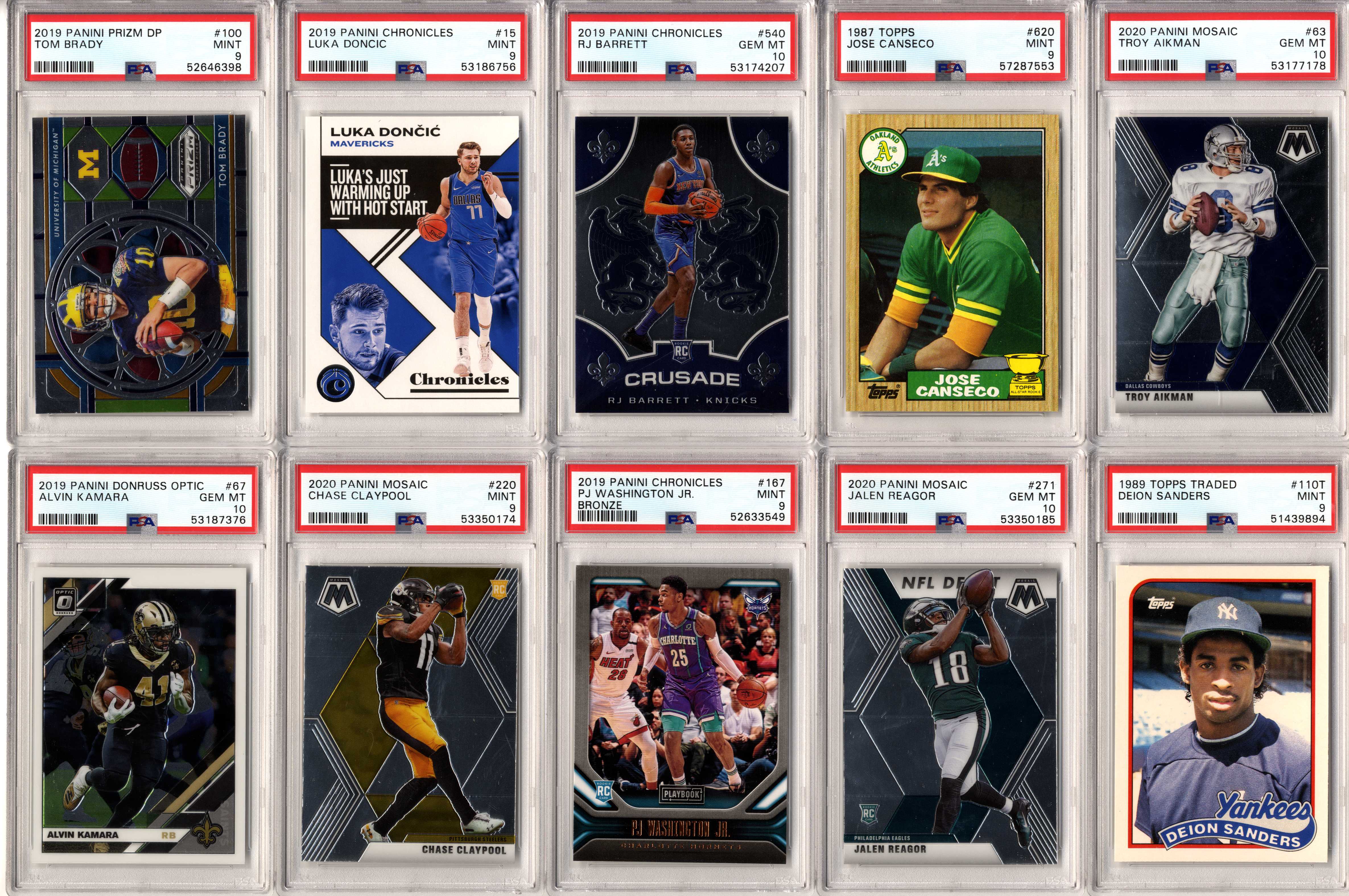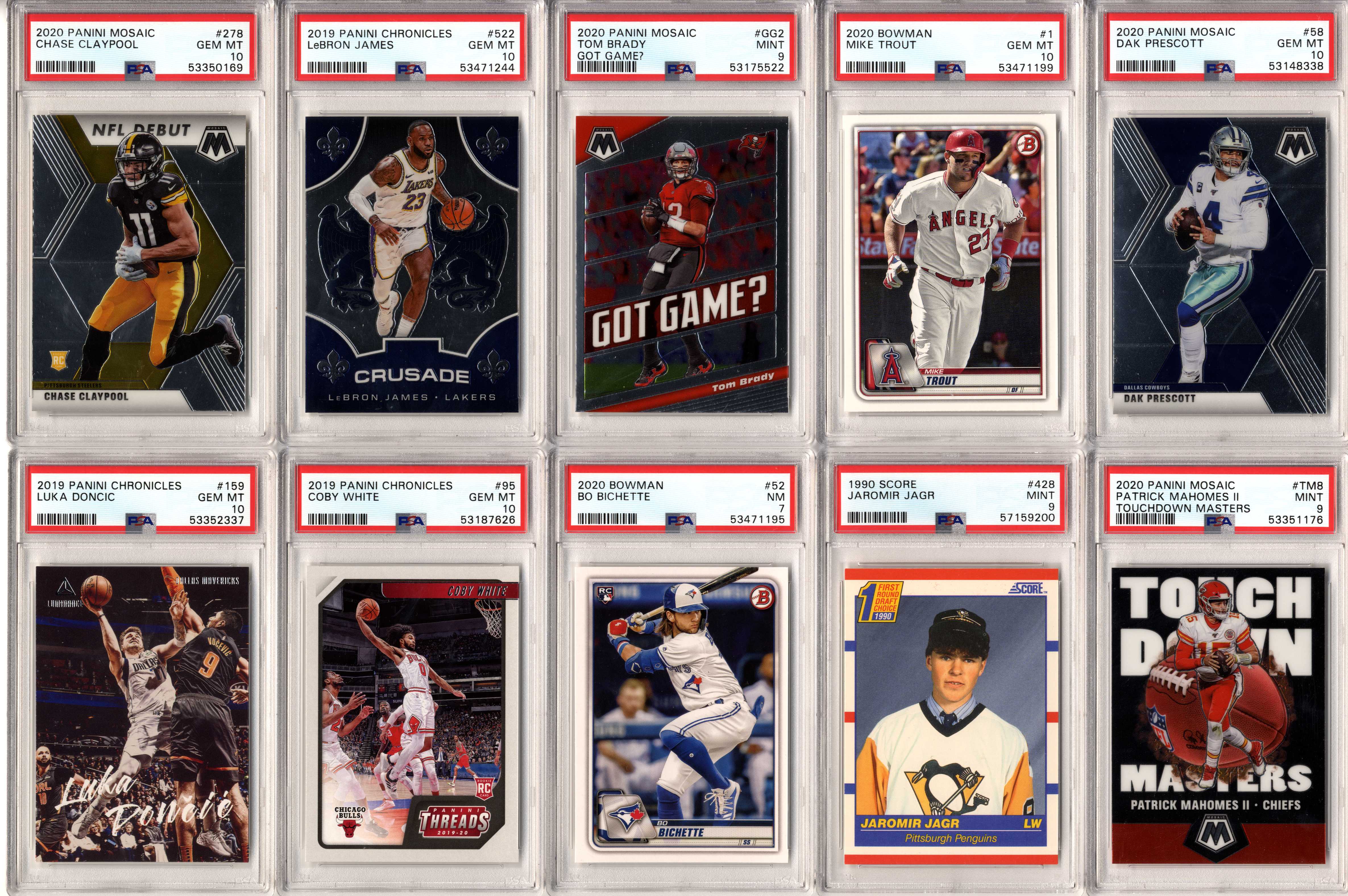 Look for graded and ungraded cards of players such as: Michael Jordan, Tom Brady, Patrick Mahomes, Tiger Woods, Babe Ruth, Wayne Gretzky, Mike Trout, Aaron Rodgers, Magic Johnson, Larry Bird, Shohei Ohtani, Ted Williams, Mickey Mantle, Joe DiMaggio, Ken Griffey Jr., Barry Bonds, Albert Pujols, DK Metcalf, Stephen Curry, Charlie Sheen, Justin Herbert, Willie Mays, Frank Robinson, Willie McCovey, Hank Aaron, Ernie Banks, Jose Altuve, Jim Brown, Don Mattingly, Robin Yount, Mike Singletary, Walter Payton, Kobe Bryant, Trevor Lawrence, Justin Lawrence, Justin Fields, Barry Sanders, Drew Brees, Jim Kelly, Thurman Thomas, Andre Reed, Stefon Diggs, Justin Jefferson, Aaron Donald, Joe Greene, Jerome Bettis, Franco Harris, Rod Woodson, Randy Moss, Kyler Murray, Pele, Emmitt Smith, Troy Aikman, Roger Staubach, Clayton Kershaw, Lamar Jackson, Bo Jackson, Dan Marino, Pete Rose, Juan Soto, Trey Lance, Ronald Acuna Jr, Julian Edelman, Peyton Manning, Brett Favre, Joe Montana, Ezekiel Elliott, Rob Gronkowski, Davante Adams, Tyreek Hill, CeeDee Lamb, Allen Iverson, Nolan Ryan, Ray Lewis, Michael Irvin, Joe Burrow, Lou Gehrig, Shaquille O’Neal, Ja Morant, Zion Williamson, Luka Doncic, Dennis Rodman, Derrick Henry, Fernando Tatis Jr, JJ Watt, Daniel Jones, Sandy Koufax, Jerry West, Jalen Hurts, Chris Godwin, Najee Harris, Calvin Johnson, Baker Mayfield, Christian McCaffrey, Giannis Antetokounmpo, Vladimir Guerrero Jr, OJ Simpson, Yogi Berra, Eric Lindros, Brett Hull, Brian Urlacher, Dick Butkus, Troy Polamalu, Alex Rodriguez, Lamelo Ball, Russell Wilson, Terry Bradshaw, LeBron James, James Worthy, Joe Namath, Kevin Durant, Mario Lemieux, Luis Roberts, Wander Franco, Roberto Clemente, Yordan Alvarez, Mac Jones, Ty Cobb, Honus Wagner, Josh Allen, Bo Bichette, Tom Seaver, Jerry Rice, Steve Young, Dirk Nowitzki, Steve Yzerman, Tua Tagovailoa, Stephen Strasburg, Patrick Roy, Kawhi Leonard, Patrick Kane, Tim Duncan, Freddie Freeman, James Harden, Eloy Jimenez, Alexis Lafreniere, Coby White, Tyler Herro, Gavin Lux, Connor McDavid, Pete Alonso, George Brett, Rickey Henderson, Tony Gwynn, Wade Boggs, Doc Gooden, Travis Kelce, Deion Sanders, Alexander Ovechkin, Greg Maddux, Chipper Jones, Cristiano Ronaldo, Francisco Lindor, Dak Prescott, Jacob DeGrom, Ozzie Smith, Zach Wilson, Jack Eichel, Ben Simmons, Jayson Tatum, Anthony Davis, Kyle Lewis, Jasson Dominguez, Earl Campbell, Steve Nash, Carson Wentz, Cal Ripken Jr, Anthony Edwards, Sidney Crosby, Stephen Strasburg, Bryce Harper, Mookie Betts, RJ Barrett, Trae Young, bob Griese, Cody Bellinger, Ben Roethlisberger, Gale Sayers, Pat Tillman, Reggie White, Hines Ward, Dustin Pedroia, Johnny Unitas, Andrew Luck, Cris Carter, Adrian Peterson, Tim Tebow, Marshall Faulk, John Elway, Lawrence Taylor, Ronnie Lott, Anthony Munoz, Jack Lambert, John Hannah, Eric Dickerson, Ray Nitschke, Terrell Owens, Steve Young, Ladainian Tomlinson, Junior Seau, Bart Starr, Larry Fitzgerald, Derrick Thomas, Chris Paul, Shawn Kemp, Alonzo Mourning, Tim Hardaway, Chris Webber, Bill Walton, Chris Bosh, Bernard King, Chris Mullin, Joe Dumars, Grant Hill, Carmelo Anthony, Vince Carter, Kevin Johnson, Dikembe Mutombo, Tracy McGrady, Dennis Rodman, Dwight Howard, Reggie Miller, Ray Allen, Dominique Wilkins, George Gervin, Kevin McHale, Paul Pierce, Jason Kidd, Allen Iverson, Patrick Ewing, Gary Payton, Isiah Thomas, Walt Frazier, Clyde Drexler, Dwyane Wade, Scottie Pippen, Julius Erving, John Stockton, Charles Barkley, Karl Malone, Kevin Garnett, Hakeem Olajuwon, David Robinson and many more!