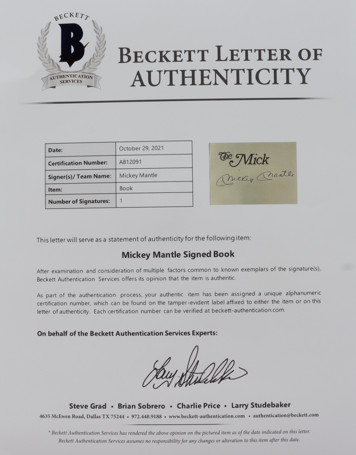 The lot / autograph(s) includes an official Beckett Authentication Services hologram and matching LOA as well as an official James Spence Authentication (JSA) hologram and matching LOA for authenticity purposes.