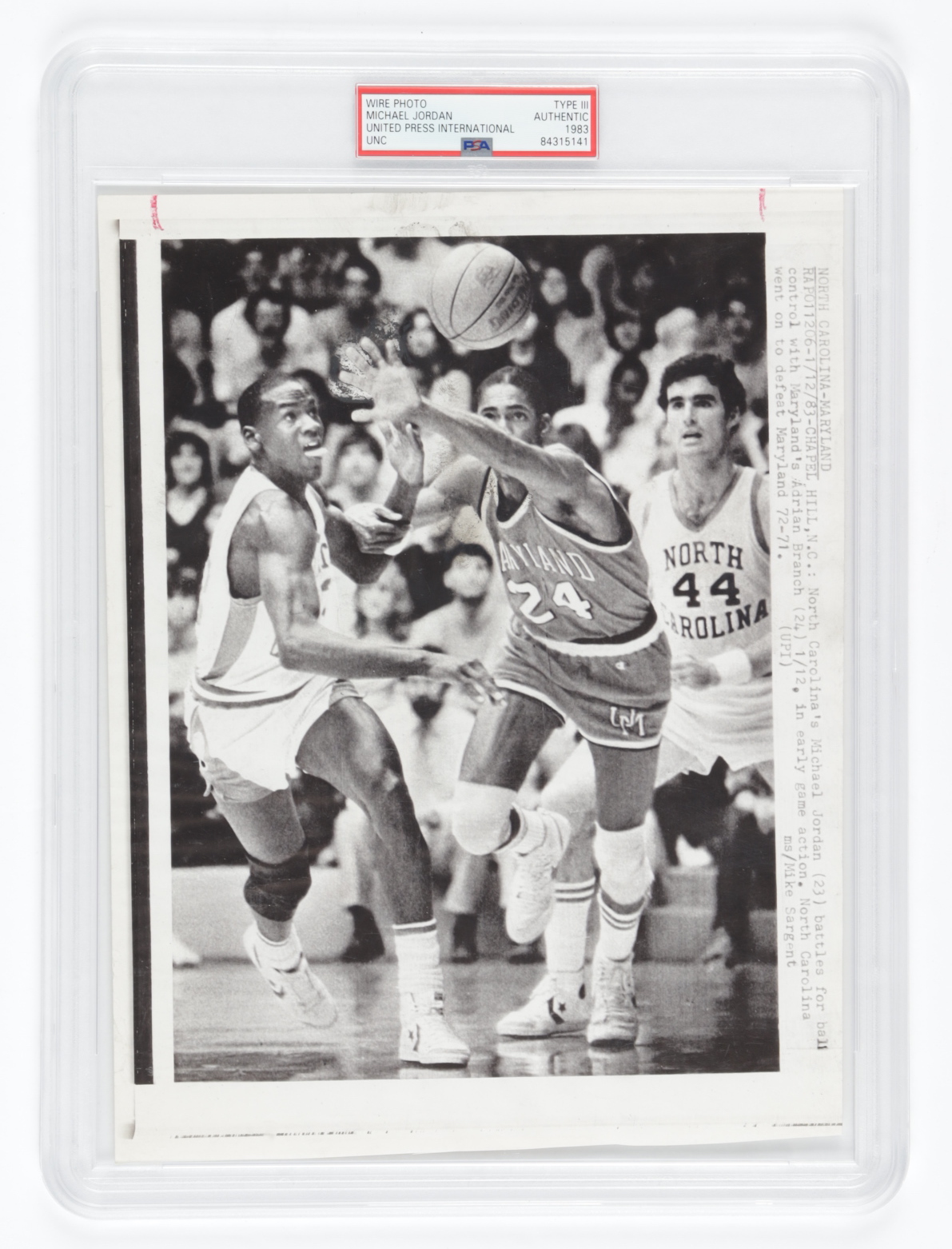 1983 original United Press International photo measures approximately 8" x 11" in size and features Michael Jordan (HOF).