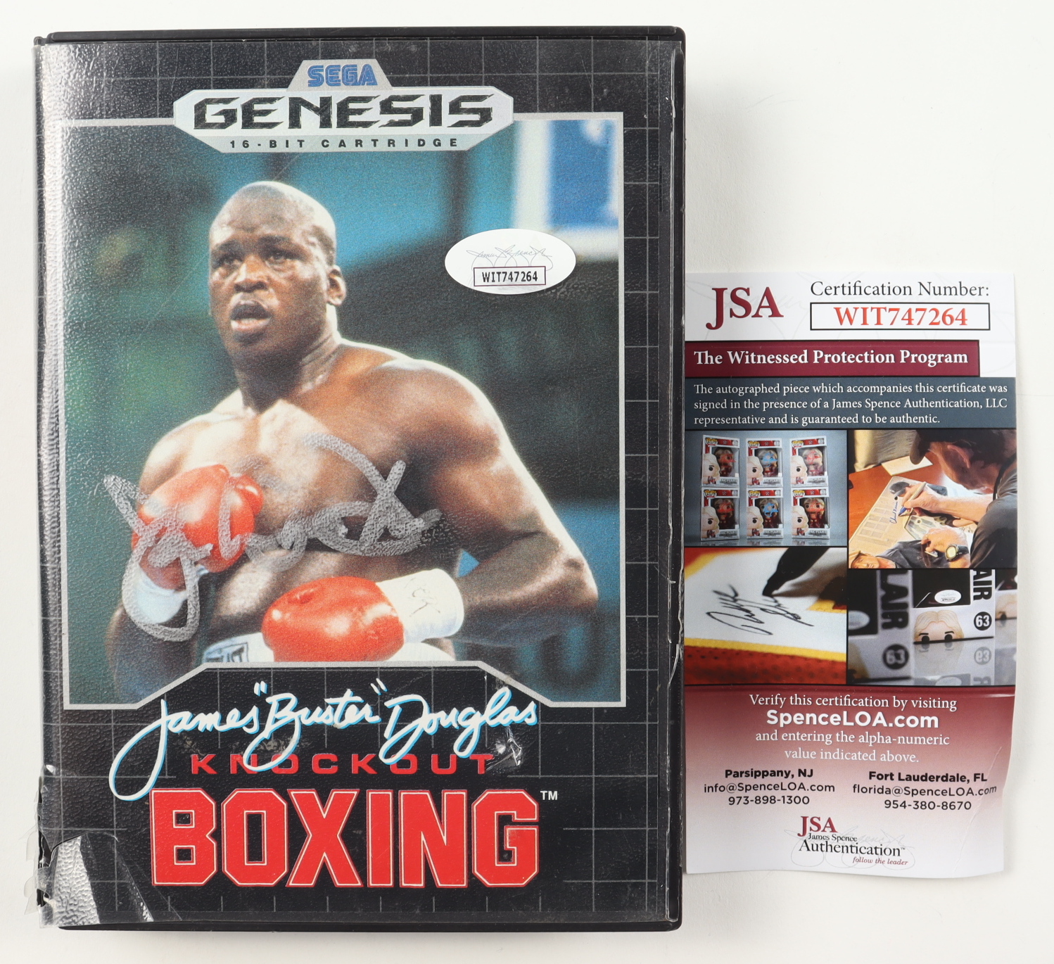 "James "Buster" Douglas Knockout Boxing" Sega Genesis video game cartridge has been hand-signed by Buster Douglas. Please note, the game is not included and the cartridge shows signs of handling and wear. See photos for more details regarding the condition of the cartridge.