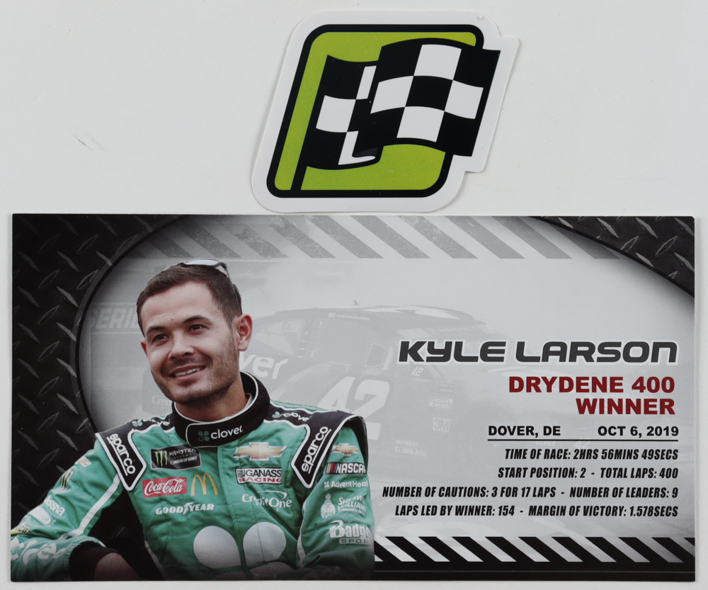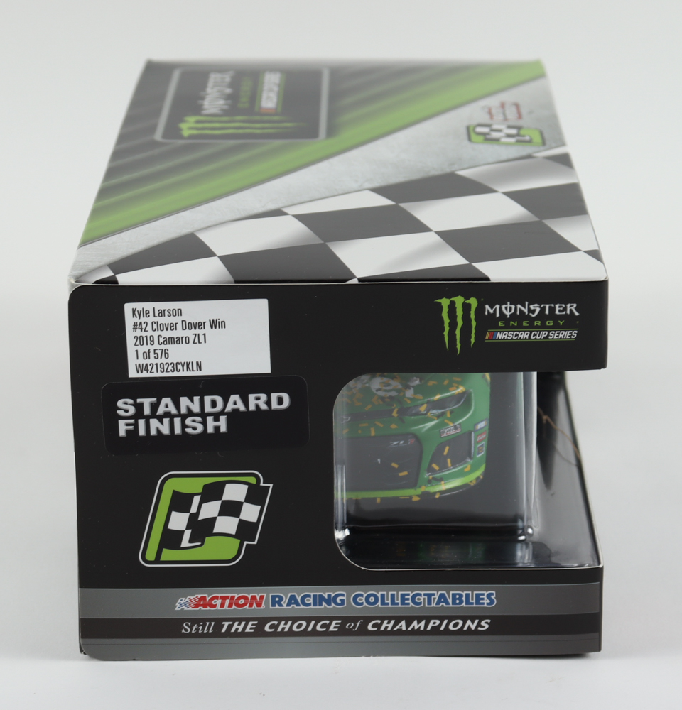 Kyle Larson Signed 2019 NASCAR #42 Clover - Dover Win - Raced Version - 1:24 Premium Action Diecast Car (PA COA)