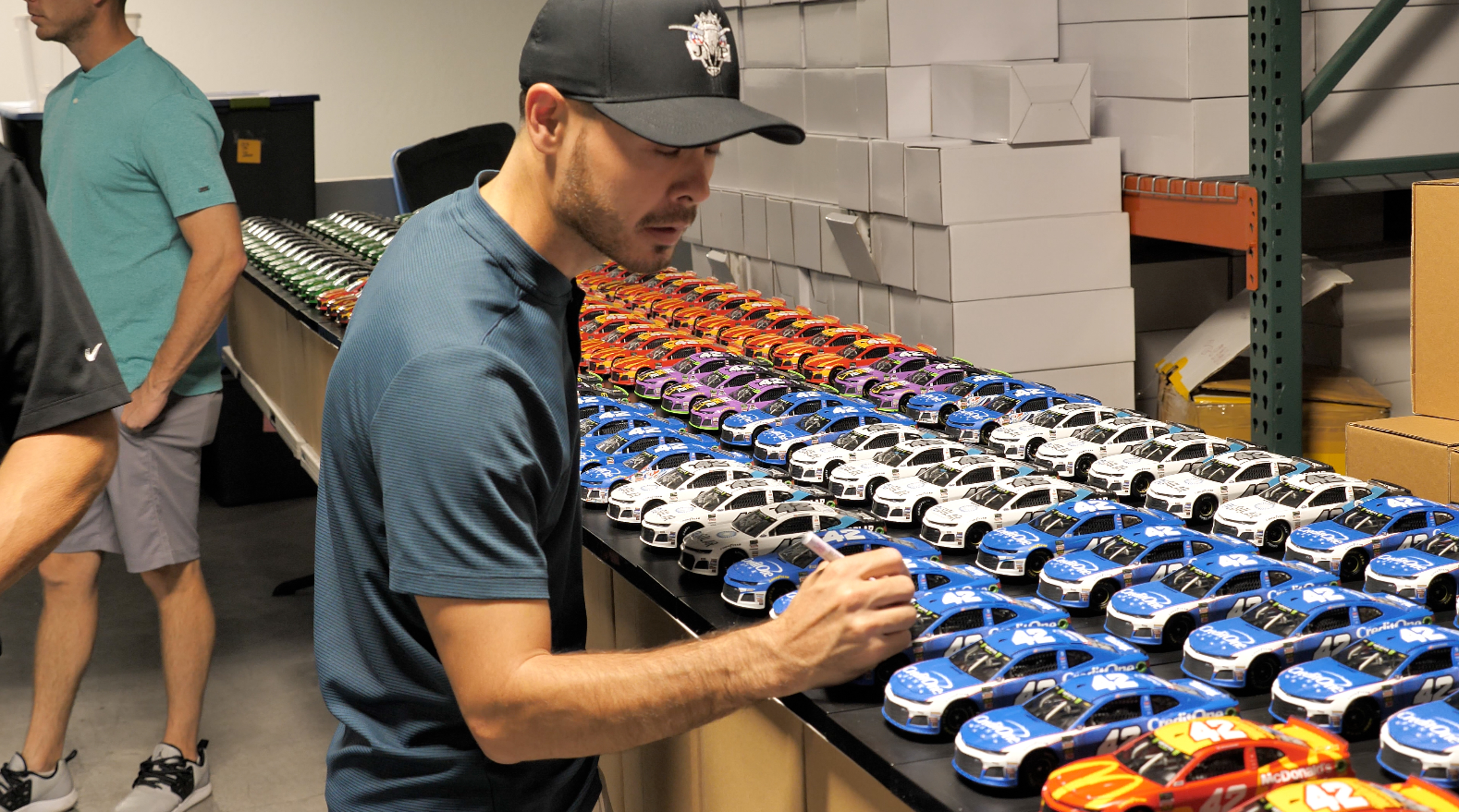 Premium die-cast car hand-signed on the windshield by Kyle Larson. The car is limited edition to just 576 produced and includes the original packaging.