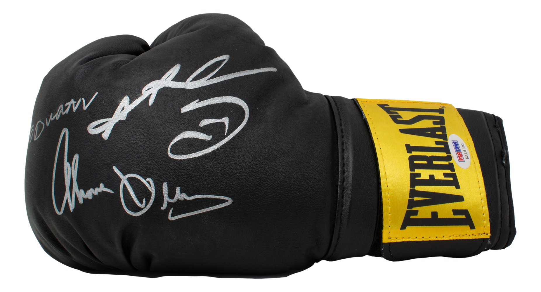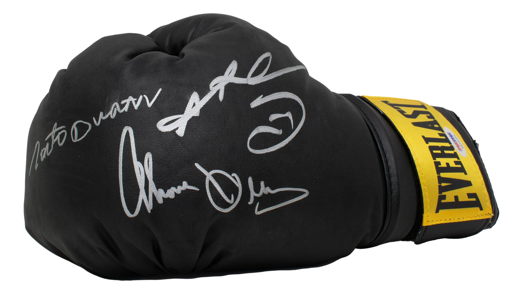 Roberto Duran, Thomas Hearns & Sugar Ray Leonard Signed Everlast Boxing Glove (PSA)