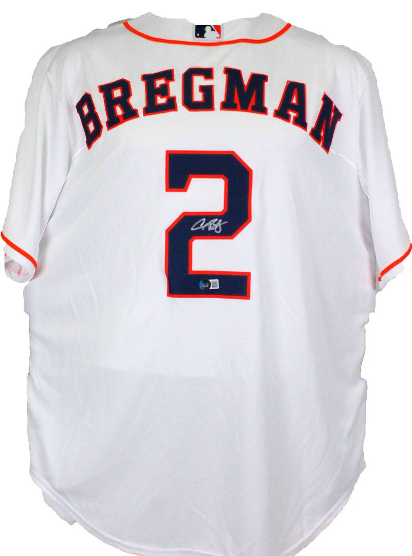 Nike on-field style jersey. Everything is sewn on, size XL. Hand-signed by Alex Bregman (Houston Astros).