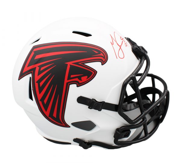Riddell Atlanta Falcons full-size Lunar Eclipse Alternate Speed replica helmet has been hand-signed by Grady Jarrett.