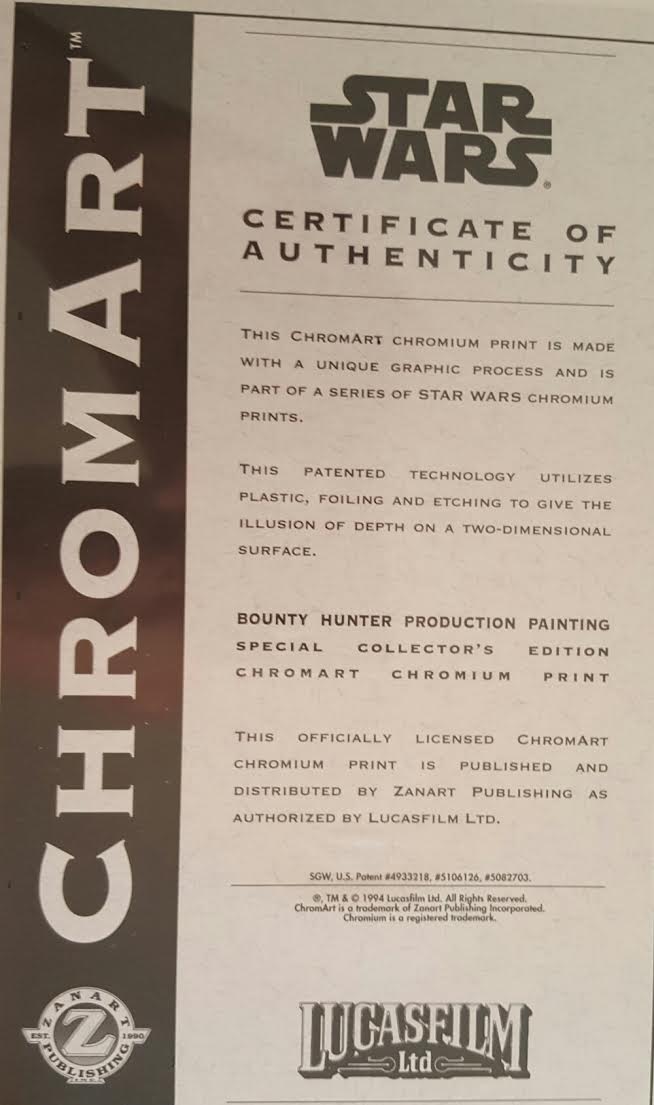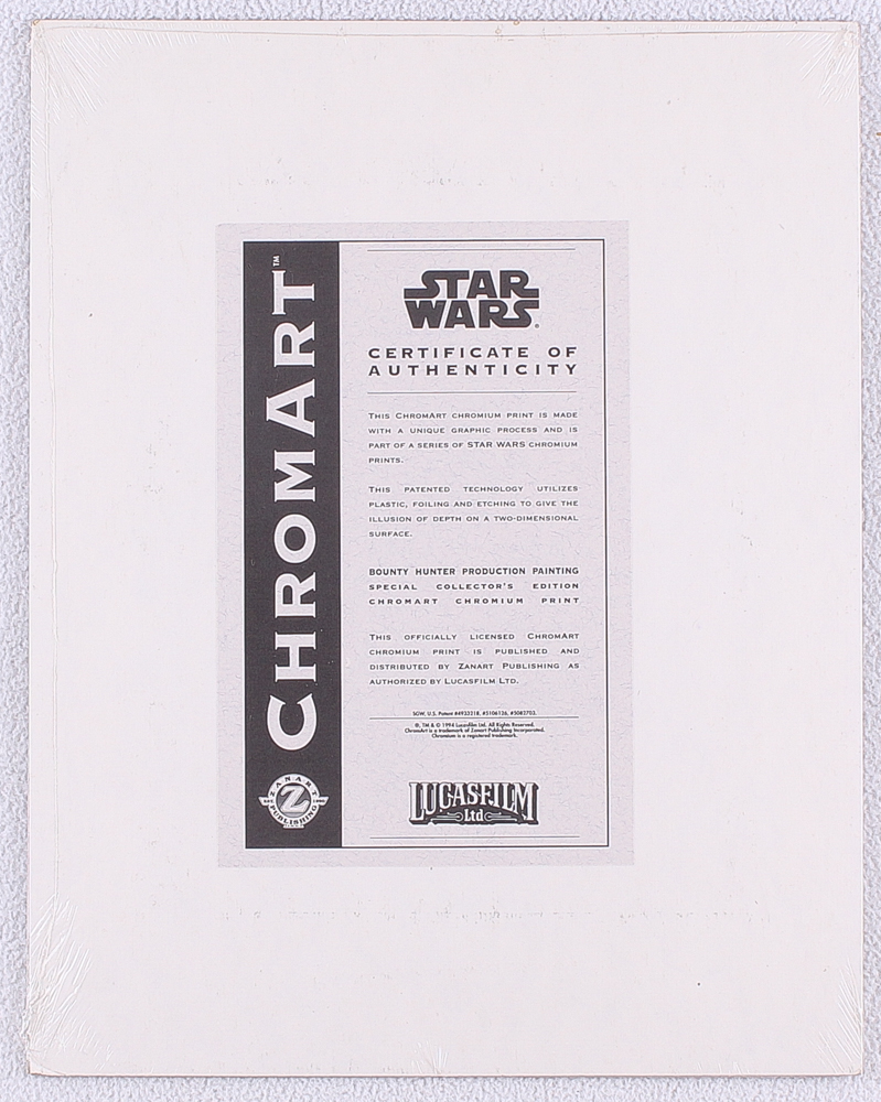 Star Wars The Empire Strikes Back 1994 Limited Edition Chromium Print: Bounty Hunter Production Painting (Lucasfilm COA)