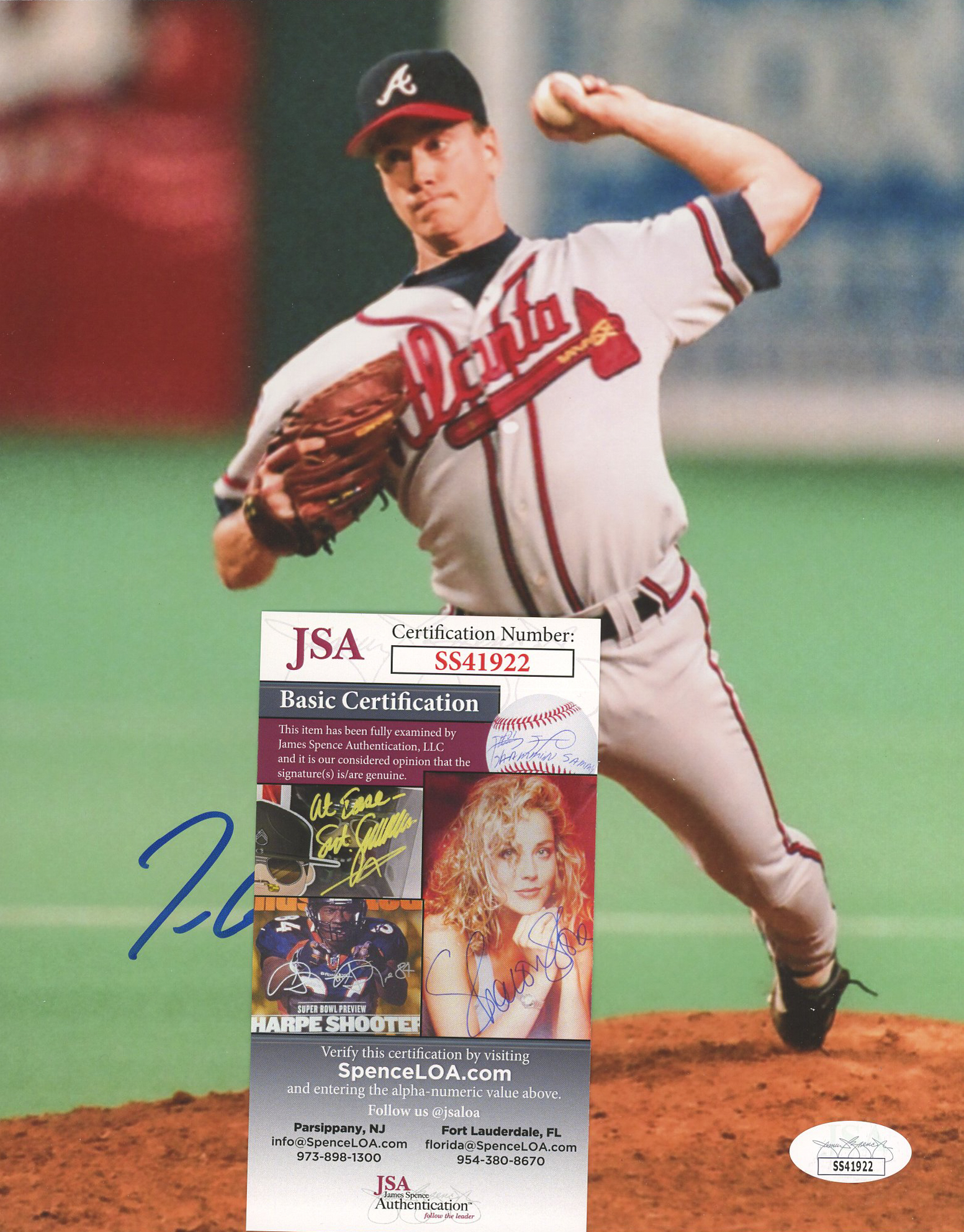 Photo measures 8" x 10" in size. Hand-signed by Tom Glavine (Atlanta Braves, HOF).