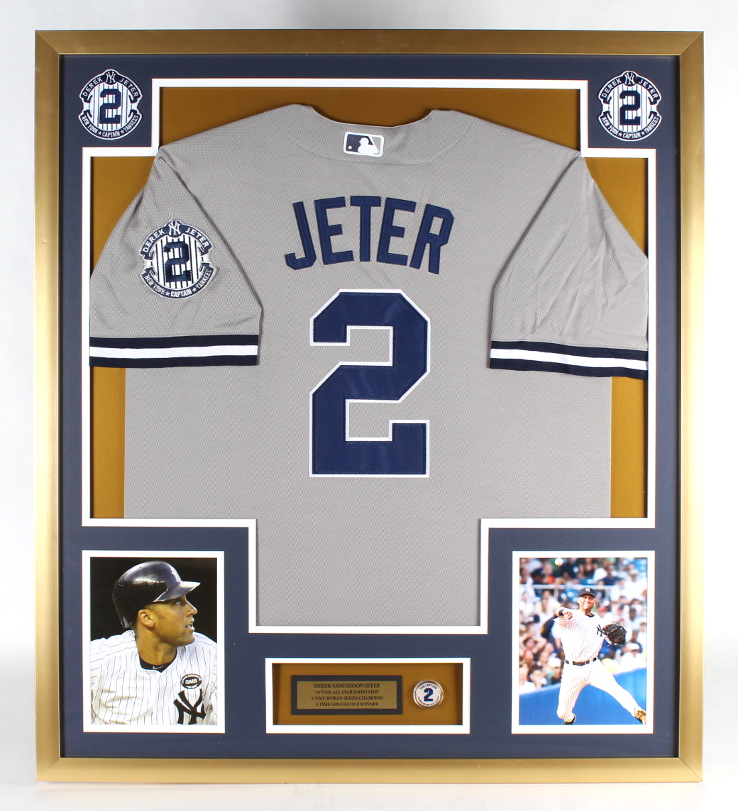 Derek Jeter 32x36 Custom Framed Jersey Display with Official "The Captain" pin