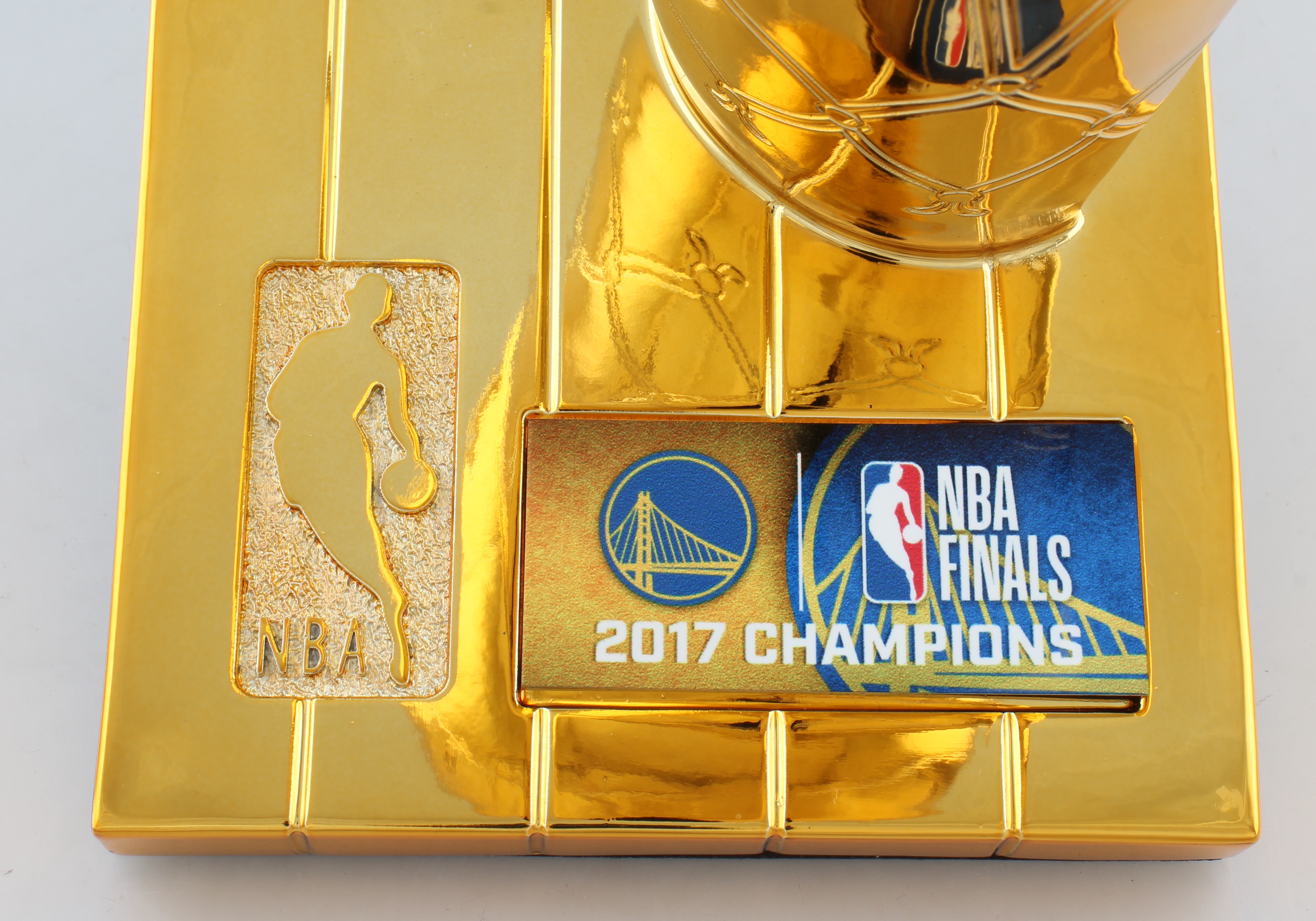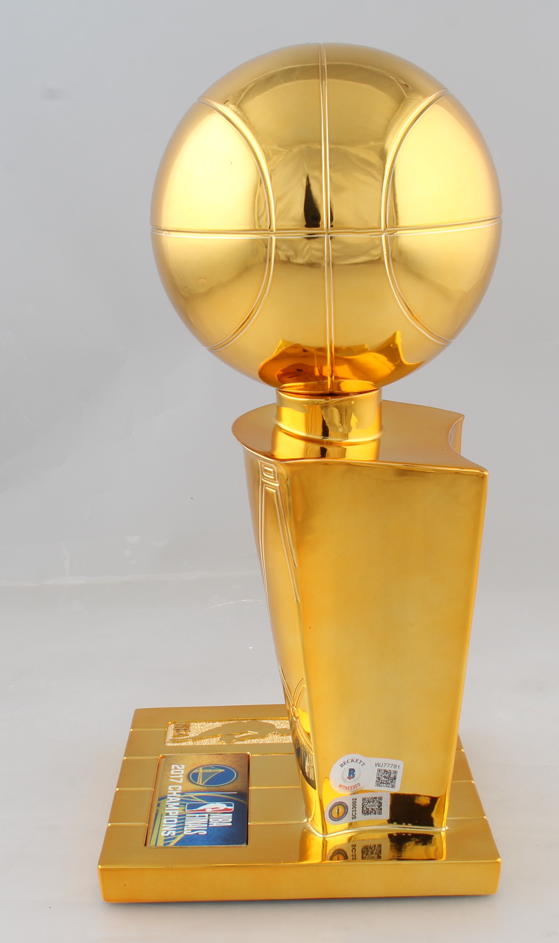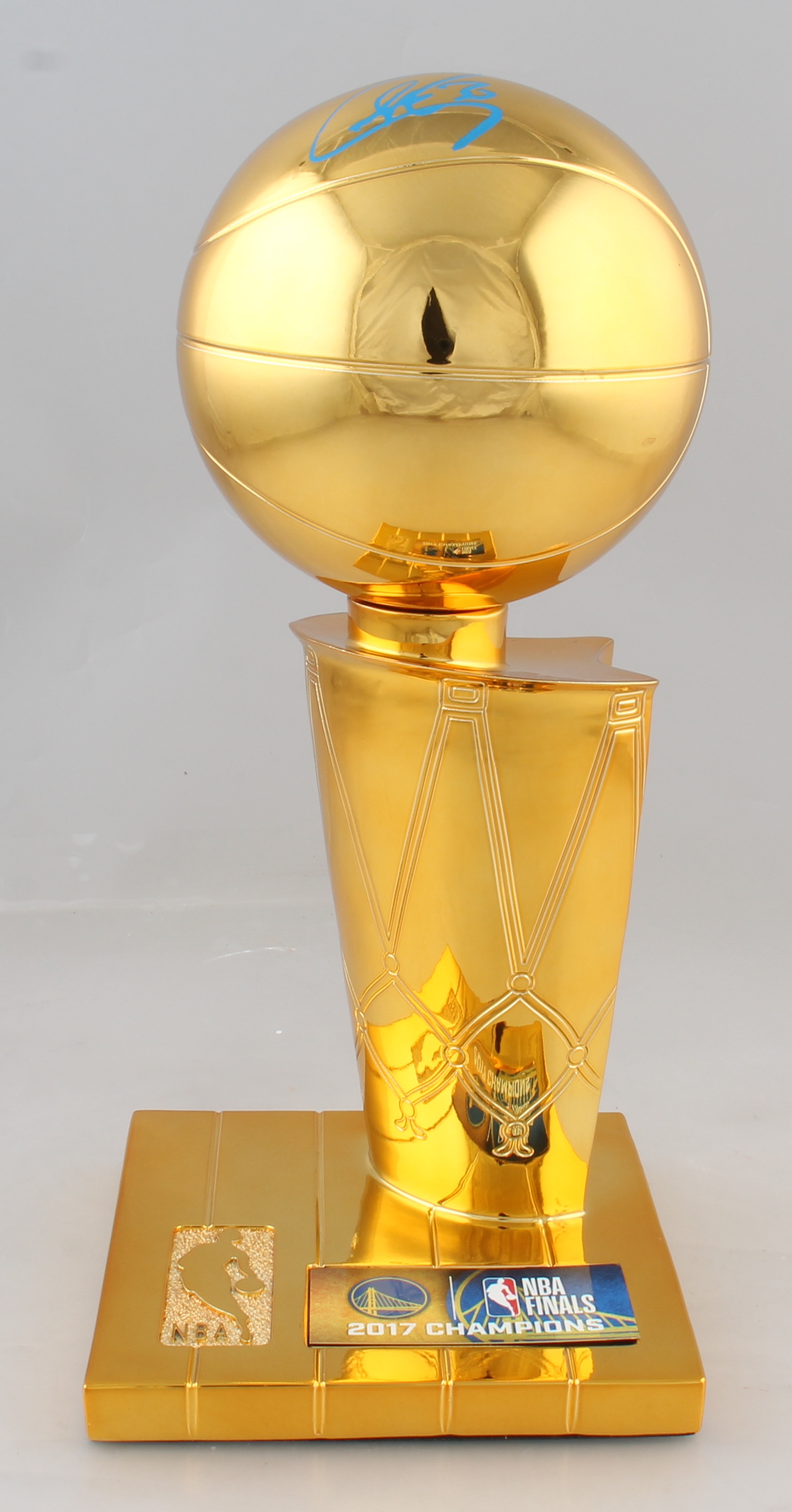 Replica championship trophy measures approximately 12" tall and has been hand-signed by Stephen Curry (Golden State Warriors).