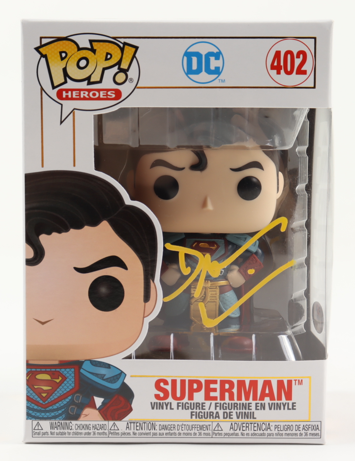 Funko Pop! figure measures approximately 4" tall and the packaging has been hand-signed by Dean Cain ("Lois & Clark: The New Adventures of Superman" / Clark Kent / Superman). Please note, packaging shows some wear.