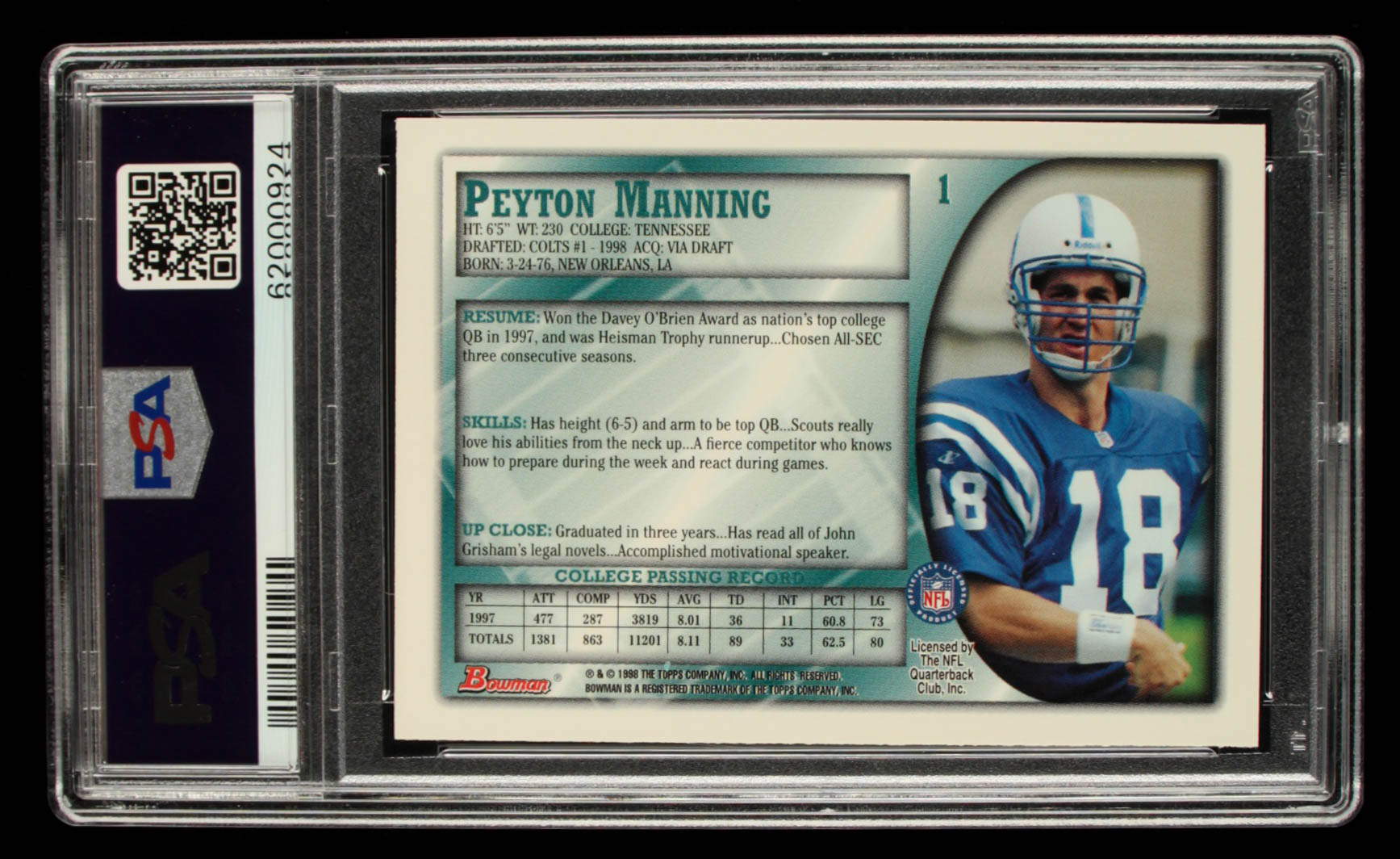 Peyton Manning 1998 Bowman #1 RC (PSA 7)
