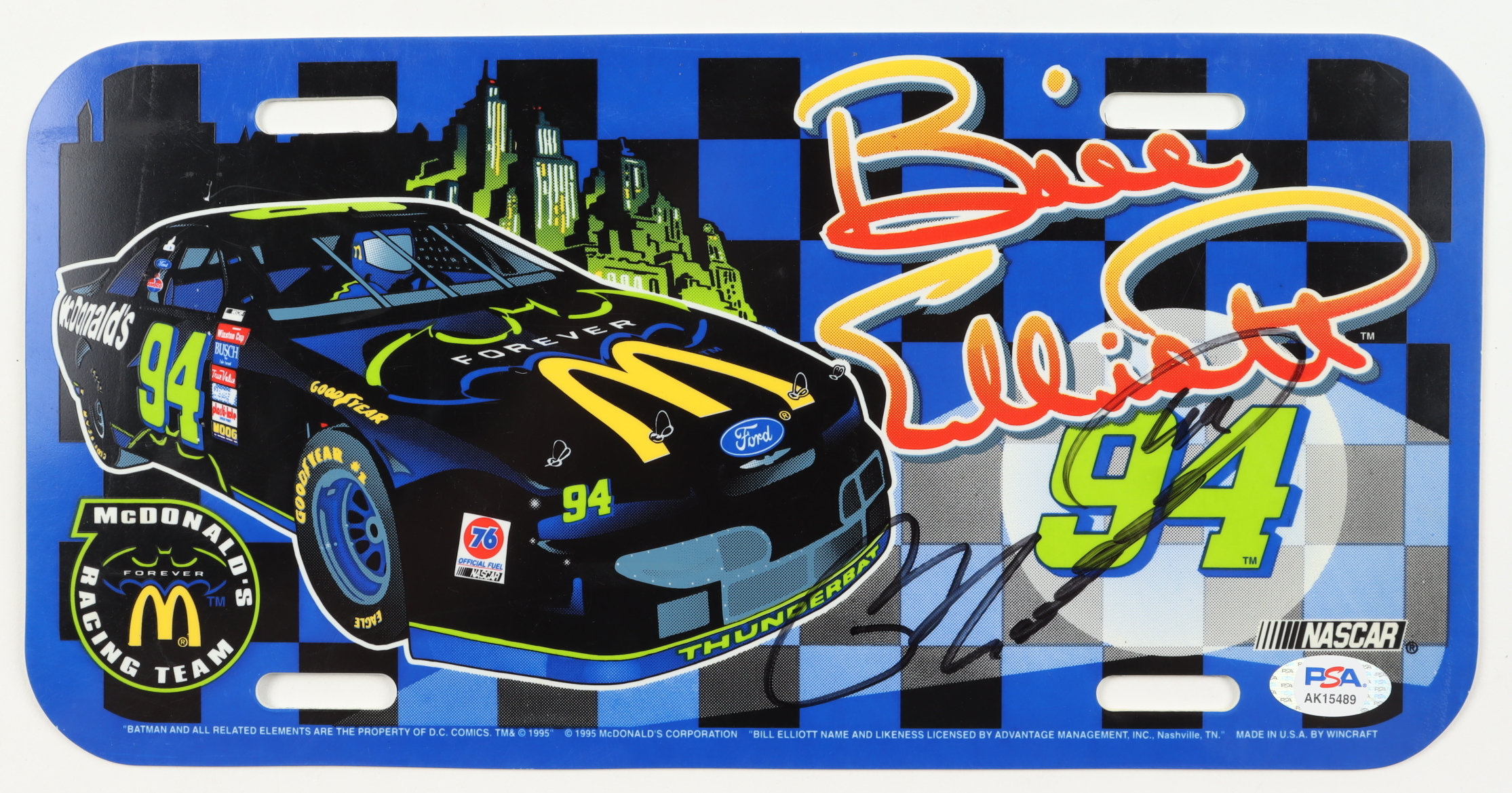 Bill Elliott Signed Hot Wheels NASCAR License Plate (PSA)