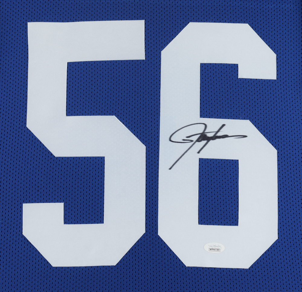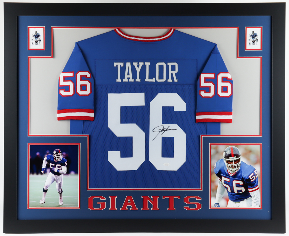 Custom frame measures 35" x 43" in size and features a jersey hand-signed by Lawrence Taylor (HOF).