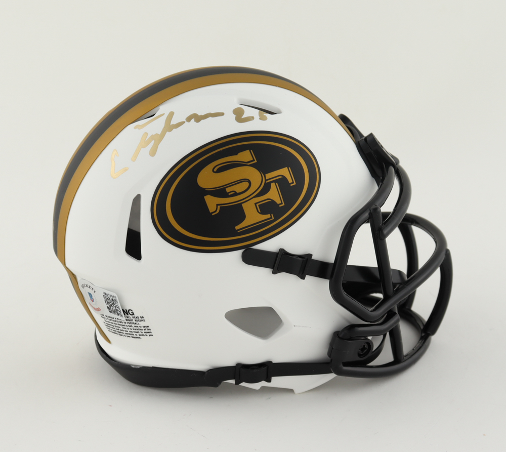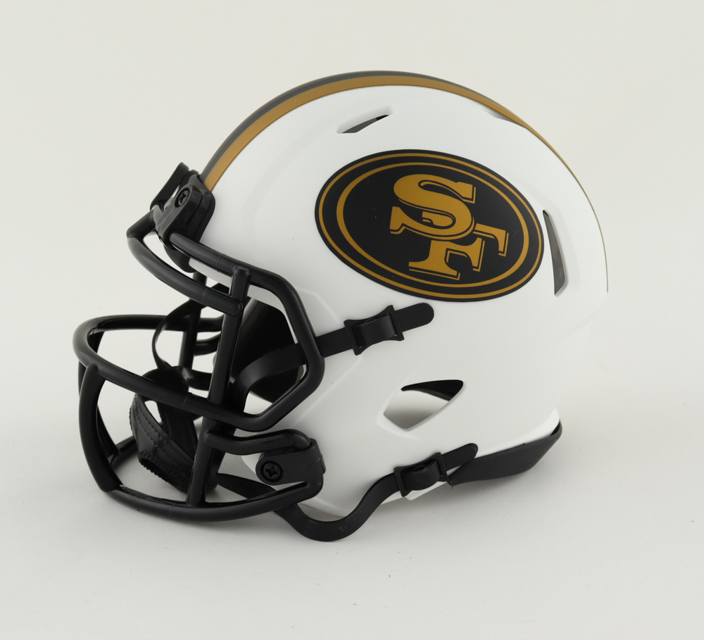 Riddell San Francisco 49ers Lunar Eclipse Alternate Speed mini helmet. Hand-signed by Elijah Mitchell.