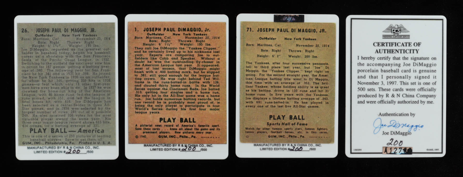 LE 1997 Joe DiMaggio "The Yankee Clipper" Signature Series Porcelain Baseball Complete Set of (4) Cards