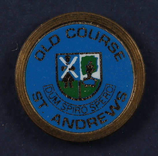 Custom frame measures 13" x 16" in size and features a print of "Old Course At St. Andrews" by LeRoy Neiman (D. 2012). Includes an Old Course pin. Please note, the signatures in the display are facsimiles. Also note, frame shows signs of handling. LeRoy Neiman was an American artist known for his brilliantly colored, expressionist paintings and screen prints of athletes, musicians, and sporting events.