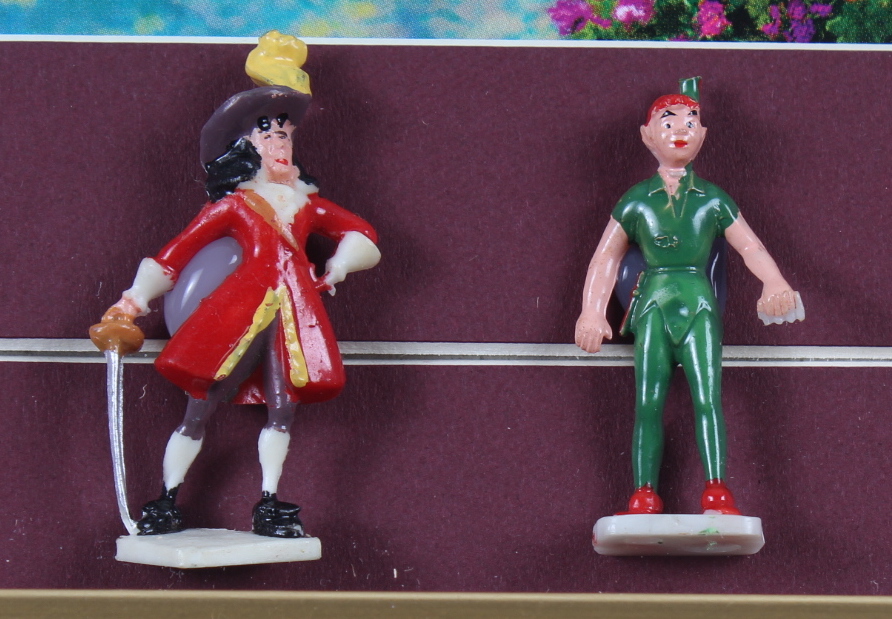 Thomas Kinkade "Peter Pan" 16x16 Custom Framed Print Display with Set of Two 1960s Ceramic Figures (See Description)