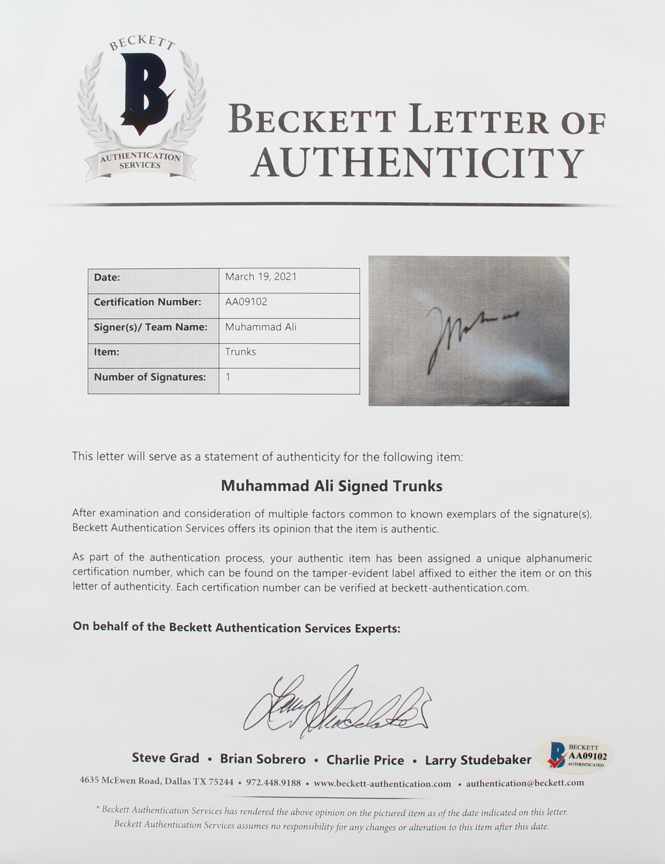 The lot / autograph(s) includes an official Beckett Authentication Services hologram and matching LOA for authenticity purposes. Authentication: Beckett LOA