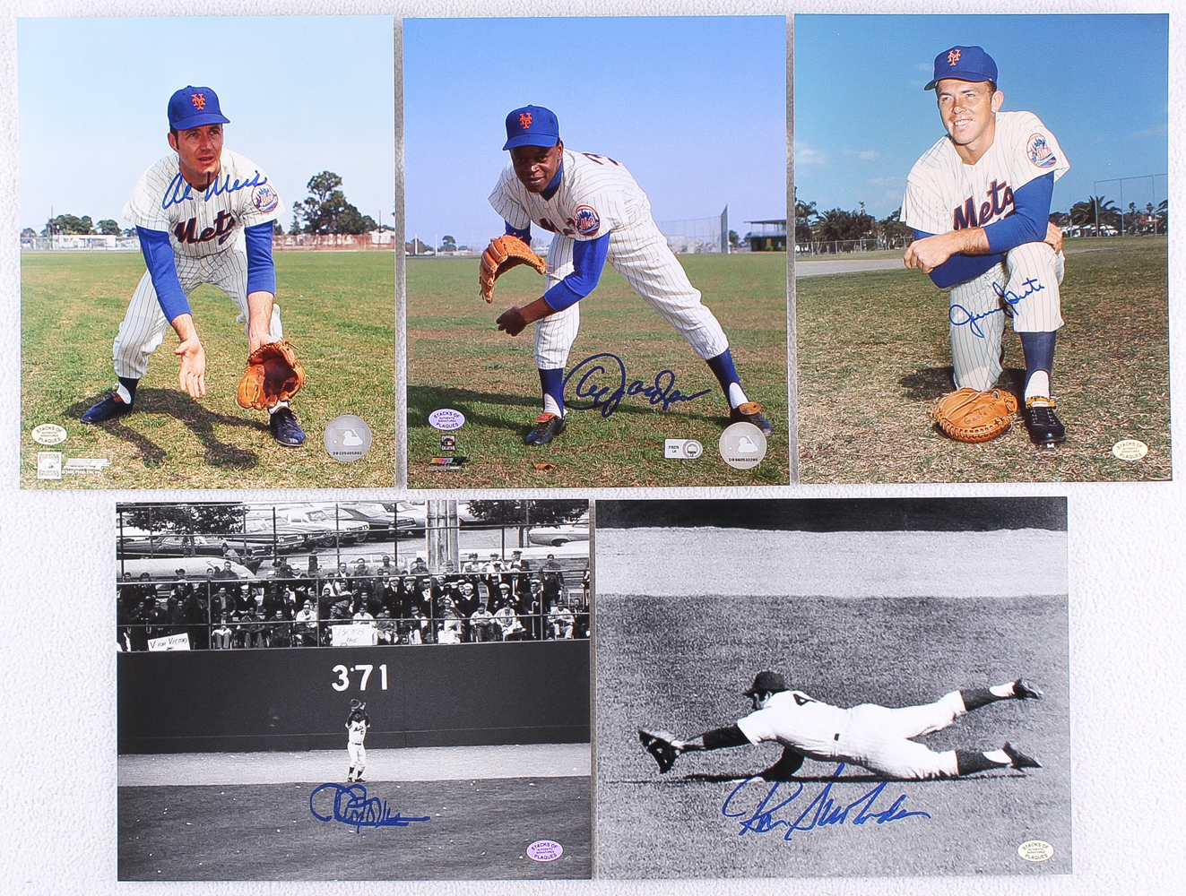 Lot of (5) photos measuring 8" x 10" in size. Hand-signed in blue felt-tip pen by Al Weis (White Sox), Al Jackson, Jerry Grote, Cleon Jones, and Ron Swoboda.