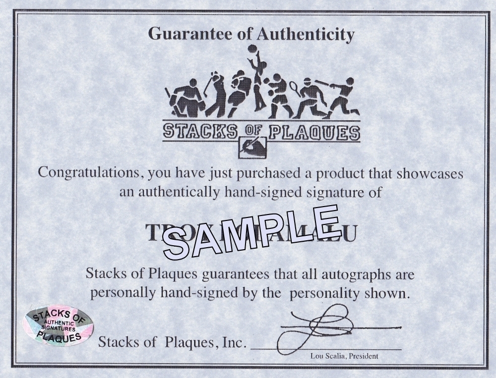 Each autograph includes an official Stacks of Plaques - Est. 1985, celebrating 30 years in the business - hologram and matching COA for authenticity purposes.