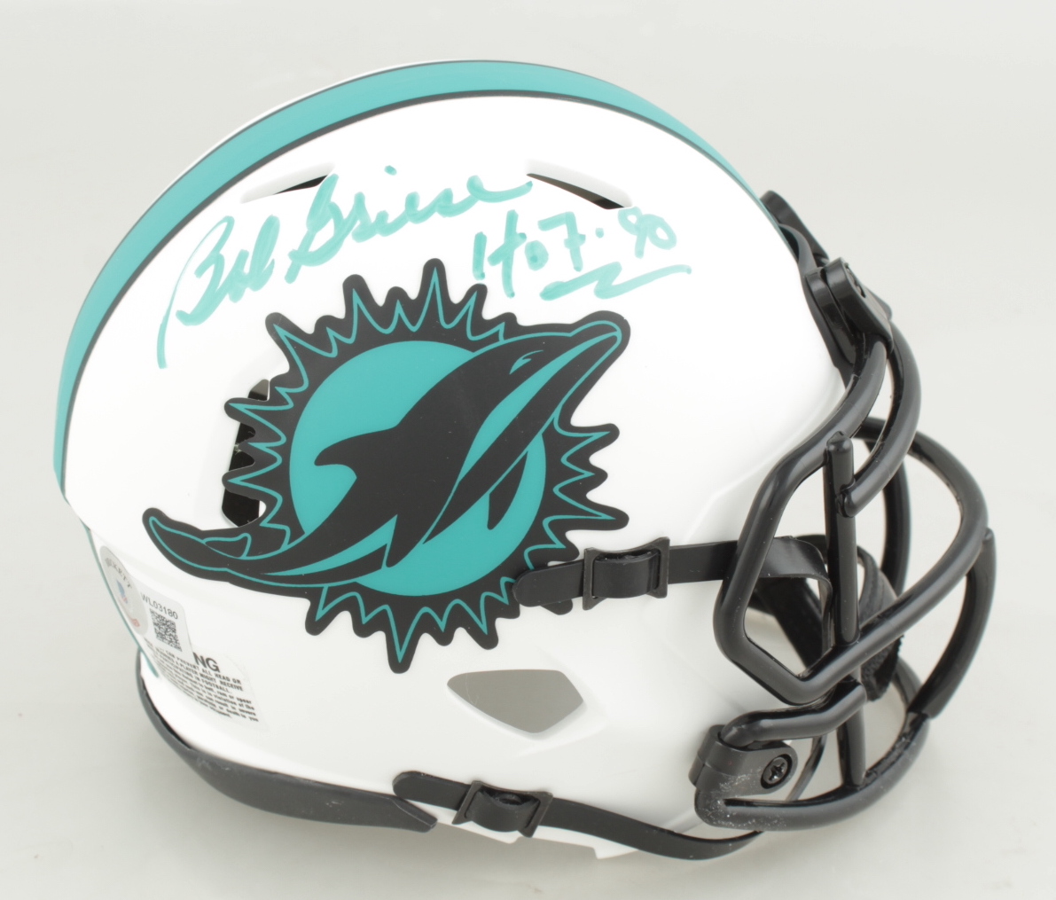 Riddell Miami Dolphins Lunar Eclipse Alternate Speed mini helmet has been hand-signed and inscribed by Bob Griese (HOF).