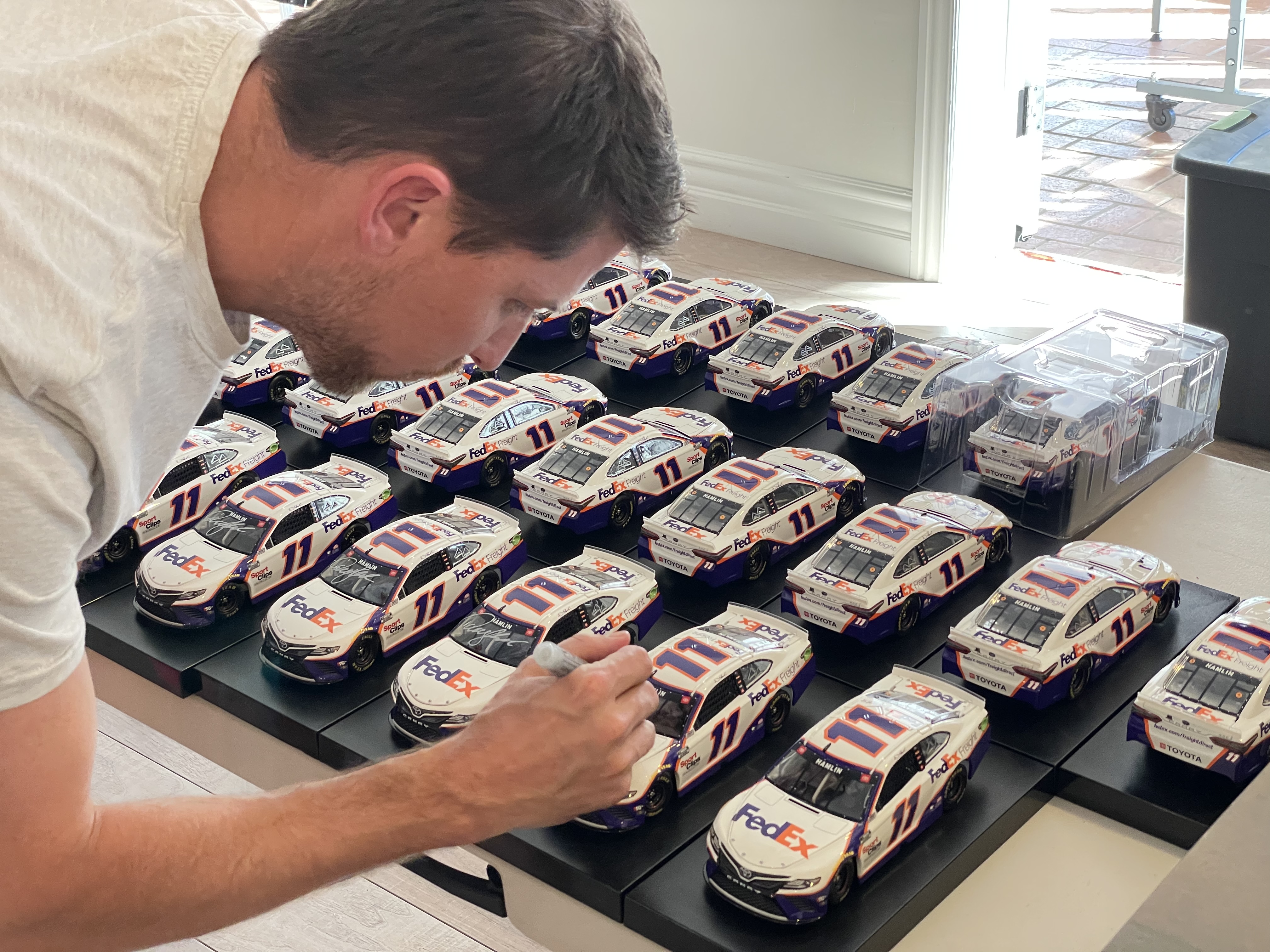 Premium die-cast car hand-signed on the windshield by Denny Hamlin. The car is limited edition to just 504 produced and includes the original packaging.