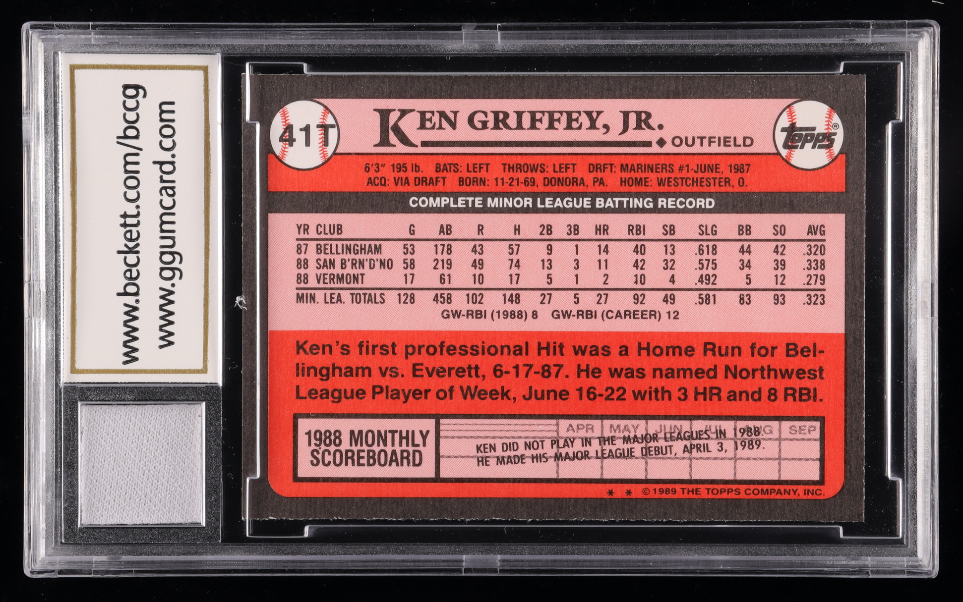 Ken Griffey Jr. 1989 Topps Traded #41T RC With Game Used Jersey Piece (BCCG 10)