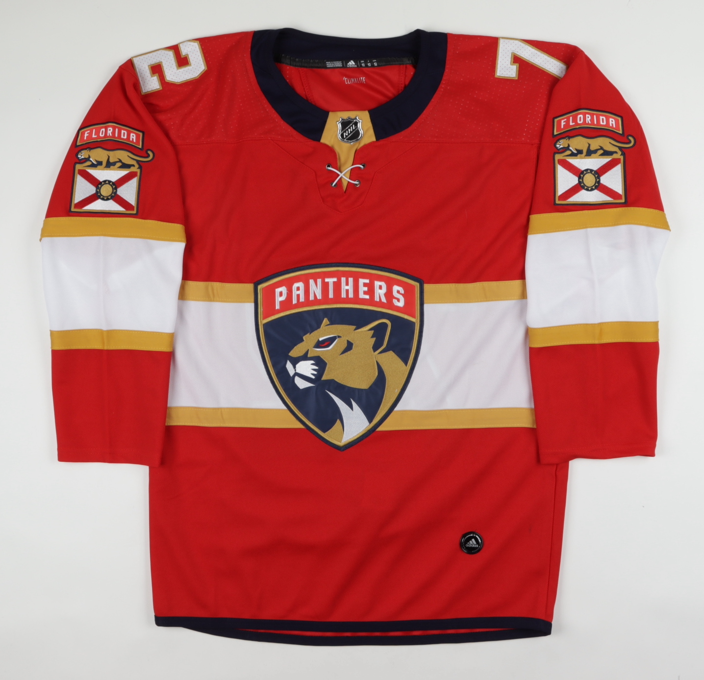 Adidas on-ice style jersey. Everything sewn on, size 52. Hand-signed by Sergei Bobrovsky (Florida Panthers).